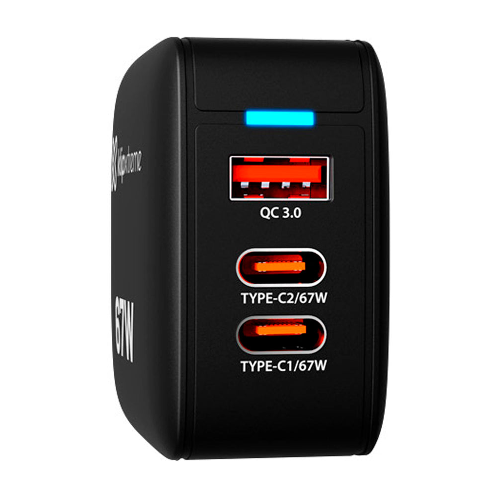 Klip Xtreme Adaptador de Corriente de Pared | 3 puertos | Tecnología GaN | Indicador LED | Negro