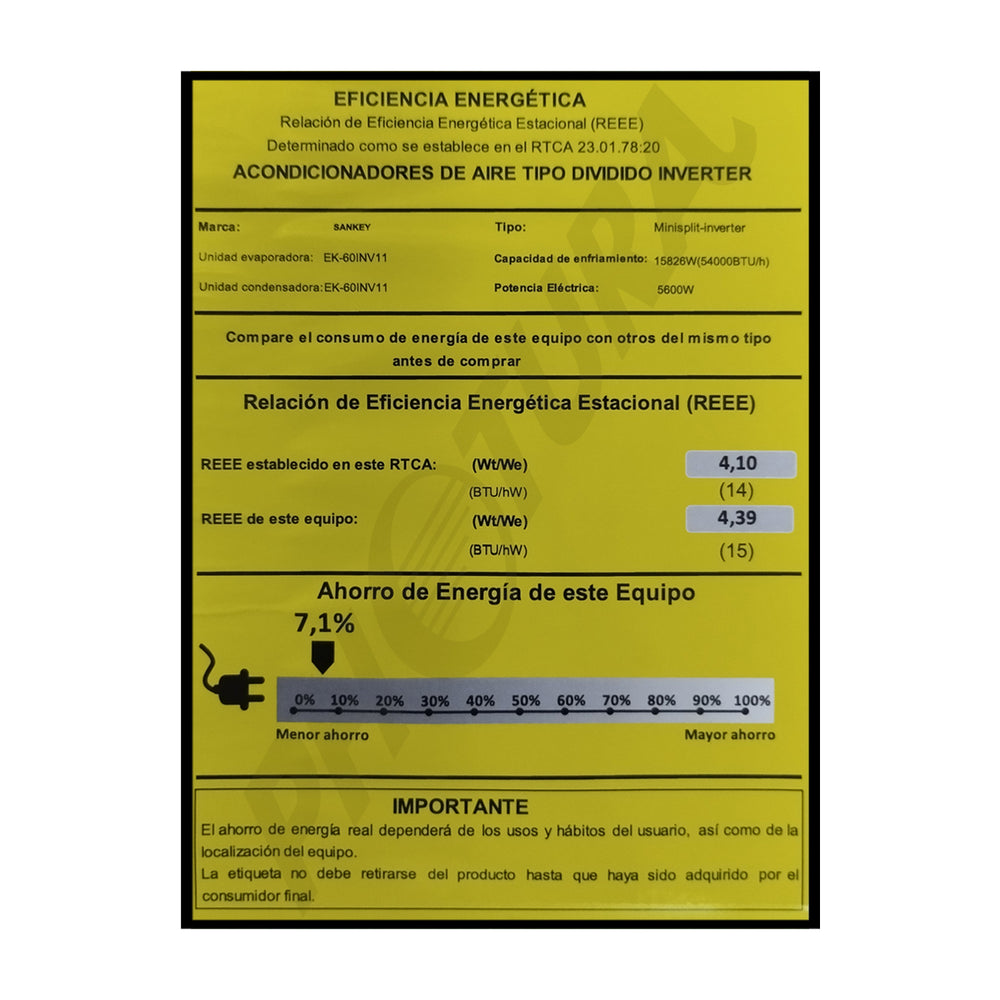 Disfruta de un ambiente más agradable con el aire acondicionado de alta eficiencia de 54,000BTU de la Marca Sankey, tendrás un ambiente libre de partículas alérgicas y tendrá mayor durabilidad y resistencia.