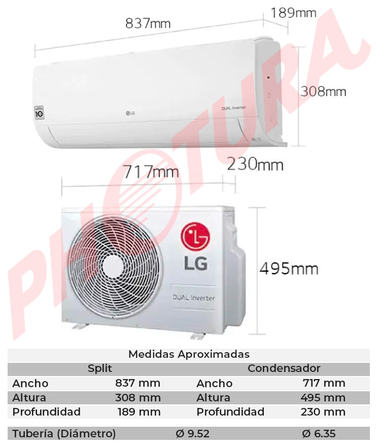 LG Aire Acondicionado Split Dual Inverter 12,400 BTU | SEER 17.5 | DUALCOOL | WiFi | ThinQ | Modo Silencioso | 220v