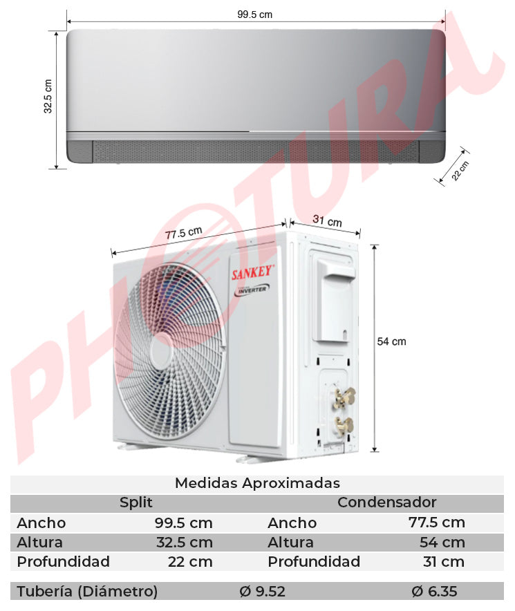 Medidas Aproximadas del split (Ancho x Alto x Profundidad): 99.5cm x 32.5cm x 22cm