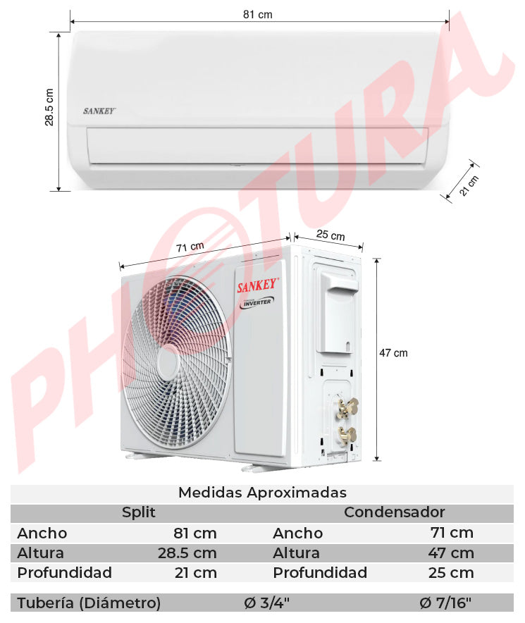 Medidas Aproximadas del split (Ancho x Alto x Profundidad): 81cm x 28.5 cm x 21cm