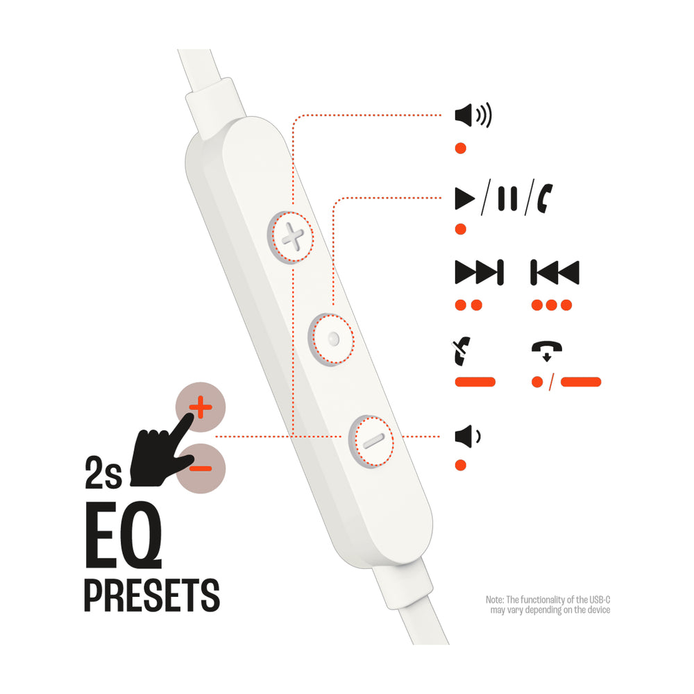 Elige entre Default, Bass o Vocal para encontrar el sonido que mejor se adapte a tu gusto a través de los 3 botones del cable.