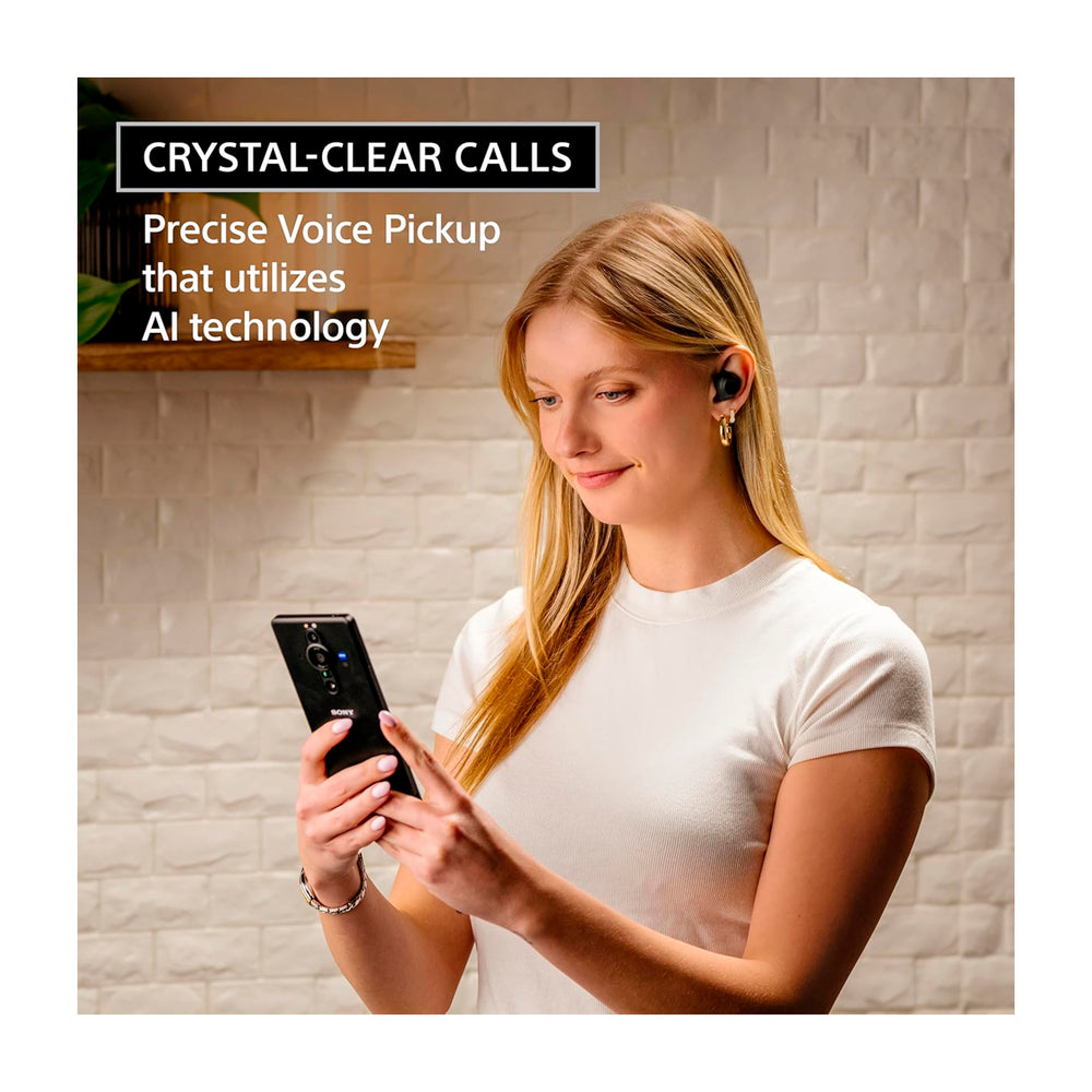 Con la tecnología Precise Voice Pickup, que controla los micrófonos dentro y fuera del tapón, y al procesamiento de señal de audio, las conversaciones son muy claras, incluso en entornos ruidosos. Nuestro algoritmo de reducción de ruido se desarrolló con IA que utiliza más de 500 millones de muestras de voz para eliminar el ruido ambiental y extraer tu voz con claridad.