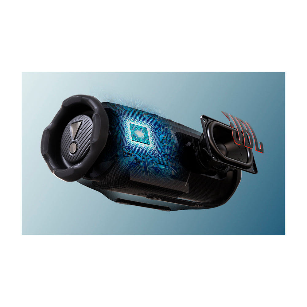 ¿Cómo mejora aún más el ya de por sí magnífico perfil de sonido de JBL Charge? Además, contamos con algunos de los mejores ingenieros del sector que están retocando nuestro kit para ofrecer la reproducción de sonido más realista hasta la fecha. Los graves sorprendentemente completos y potentes y las frecuencias altas nítidas dan al Charge 6 una nueva razón para presumir de humildad. También hemos incorporado AI Sound Boost, nuestra nueva tecnología patentada, que analiza la música en tiempo real para ofrecer el máximo rendimiento acústico con menos distorsión. Es como tener un pequeño genio del audio dentro de cada Charge 6. En conjunto, el Charge 6 sale a por todas, entre otros, con mayores booms y baps, así como belts y claps más limpios.