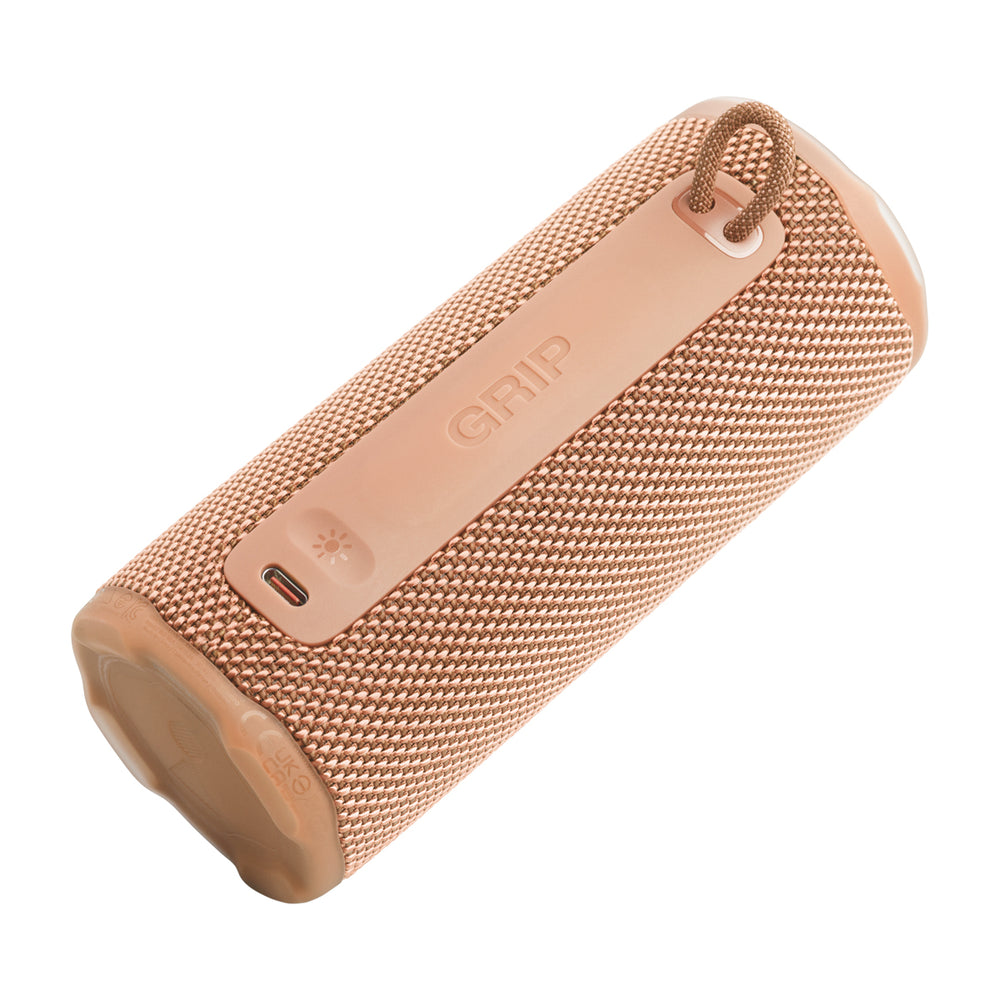 El JBL Grip puede ser lo suficientemente pequeño como para sostenerlo con una mano, pero ofrece un potente sonido JBL Pro. AI Sound Boost analiza la música en tiempo real y utiliza un algoritmo para optimizar el sonido, logrando más potencia y menos distorsión.