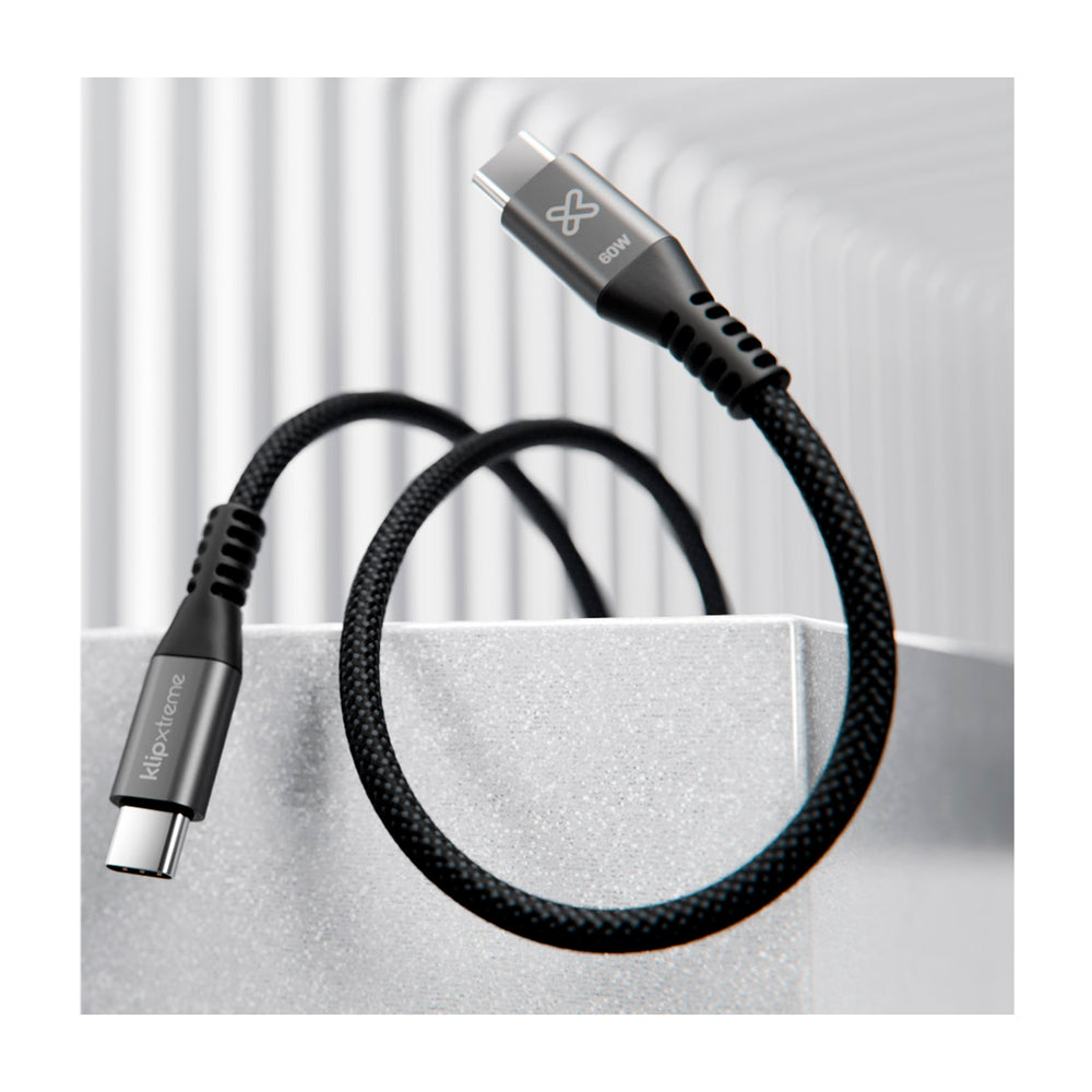 Klip Xtreme PowerGo 750 Cable USB C a USB C | 1.8 Metros | Negro Plateado