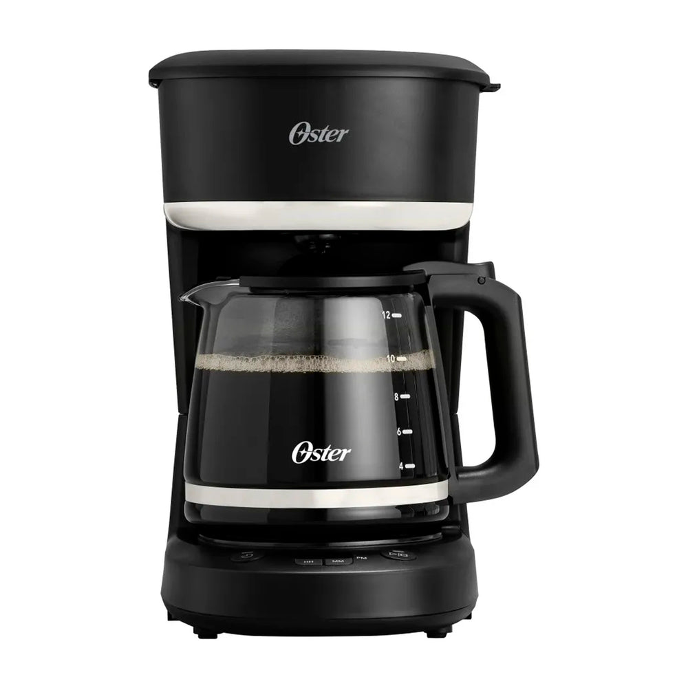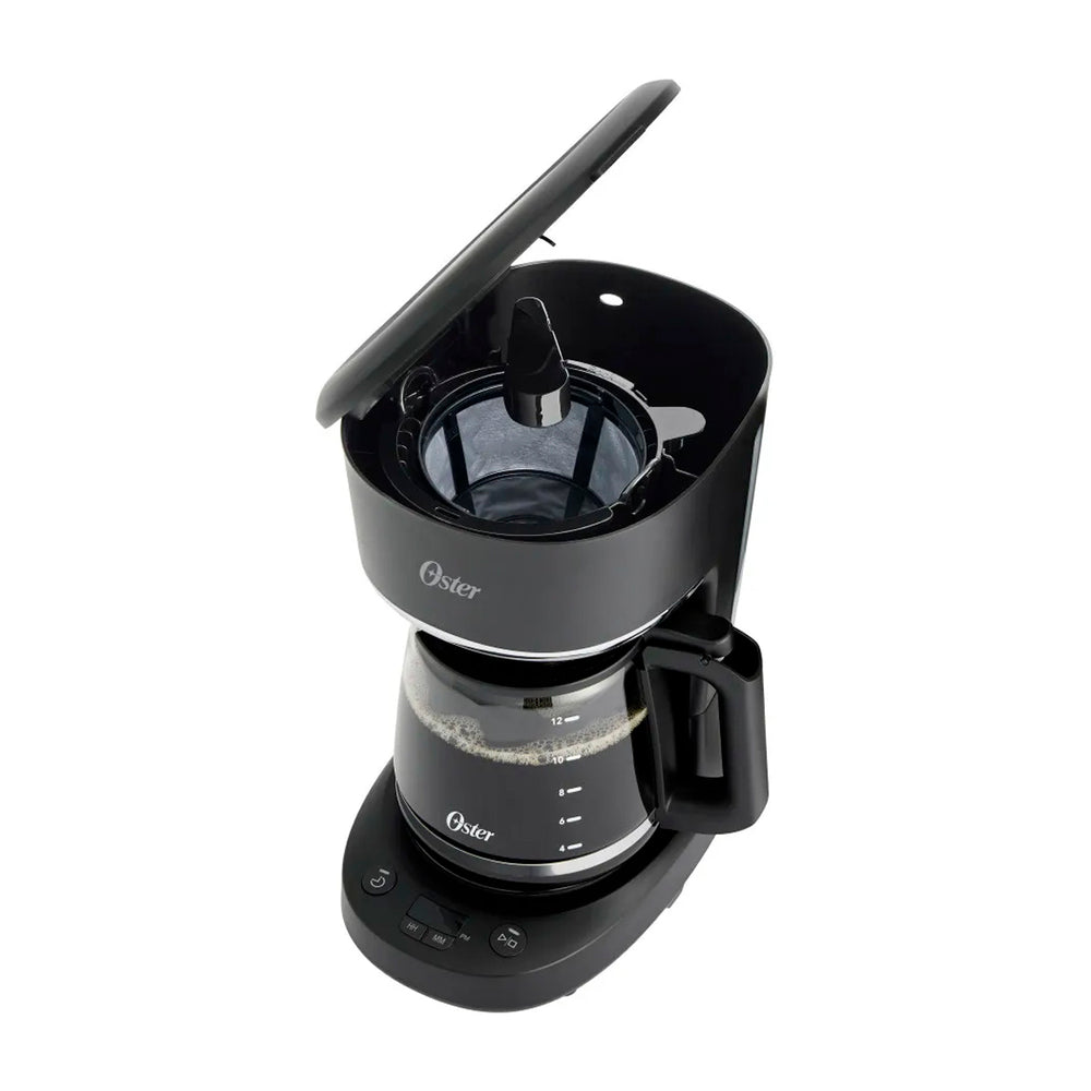 Oster BVSTDCP121B Cafetera de 12 Tazas | Programable | Pantalla LED | Filtro Lavable Permanente | Canasta Removible | Negro