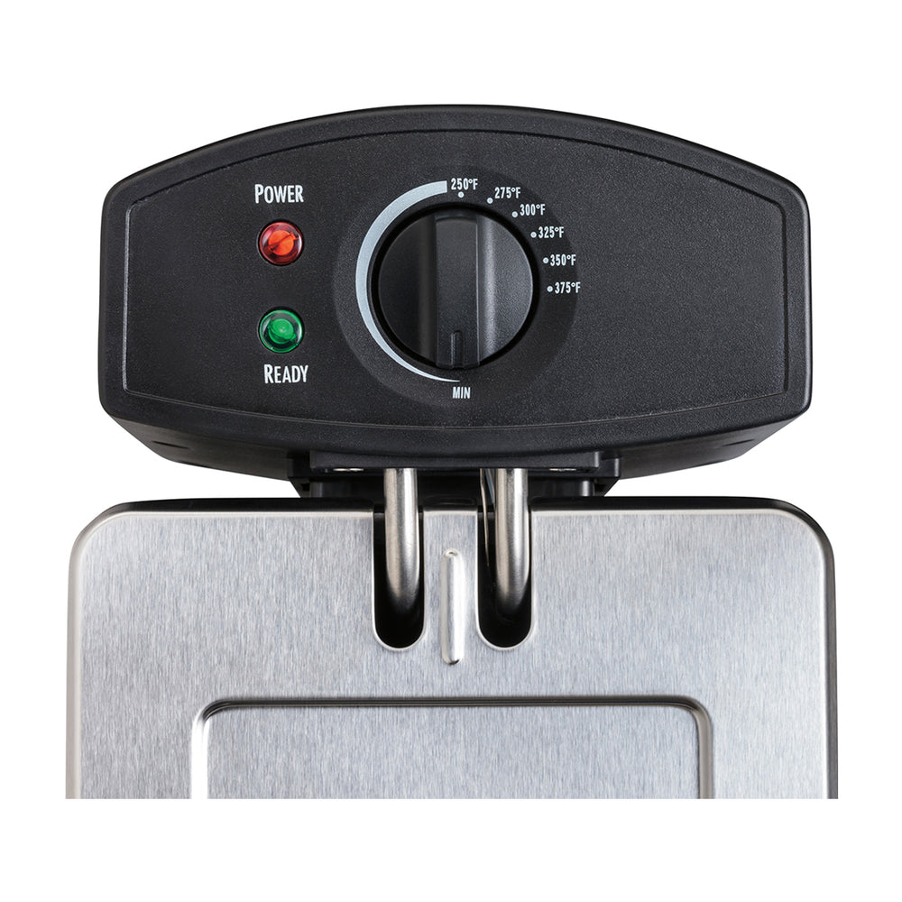 Ajuste con precisión la temperatura perfecta de fritura de 250°F a 375°F con el dial de temperatura. La luz verde lista te muestra cuando el aceite ha alcanzado el calor seleccionado para una fritura impecable.