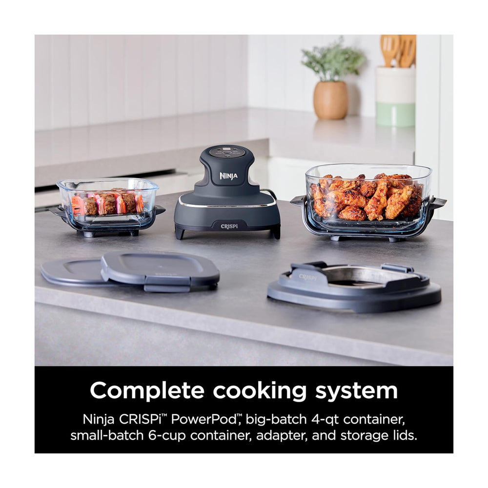 Ninja Crispi PowerPod, recipiente TempWare para lotes pequeños de 6 tazas, recipiente TempWare para lotes grandes de 4 cuartos, 2 tapas de almacenamiento, 2 platos para verduras, adaptador para recipiente Crispi