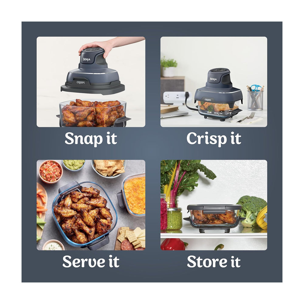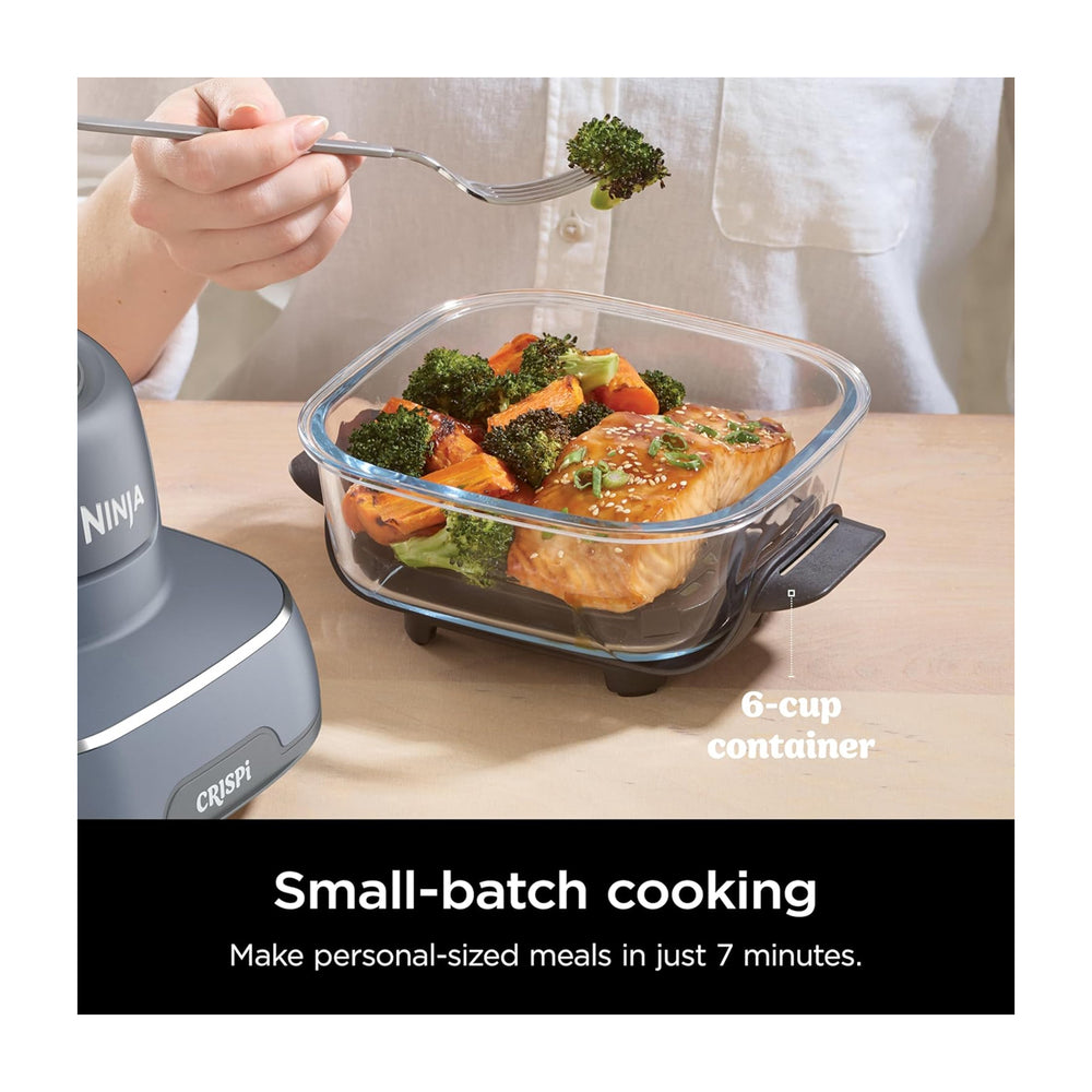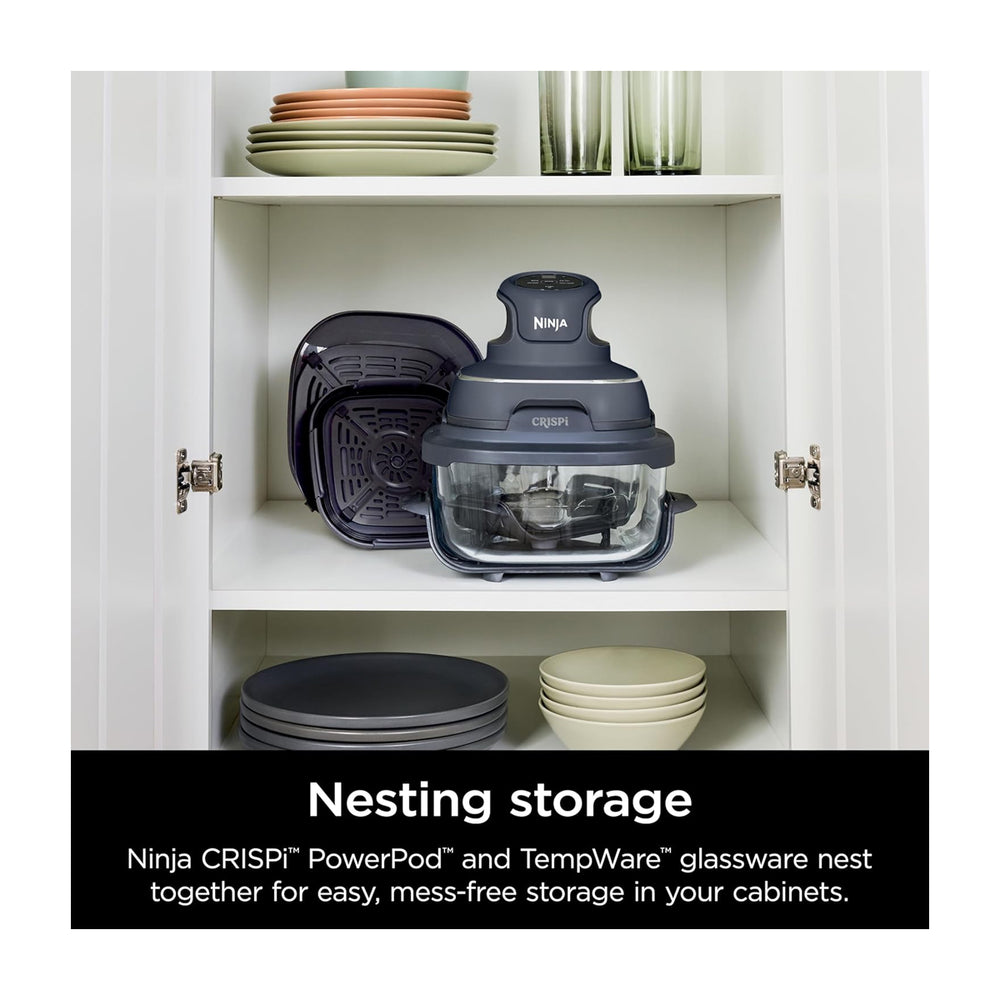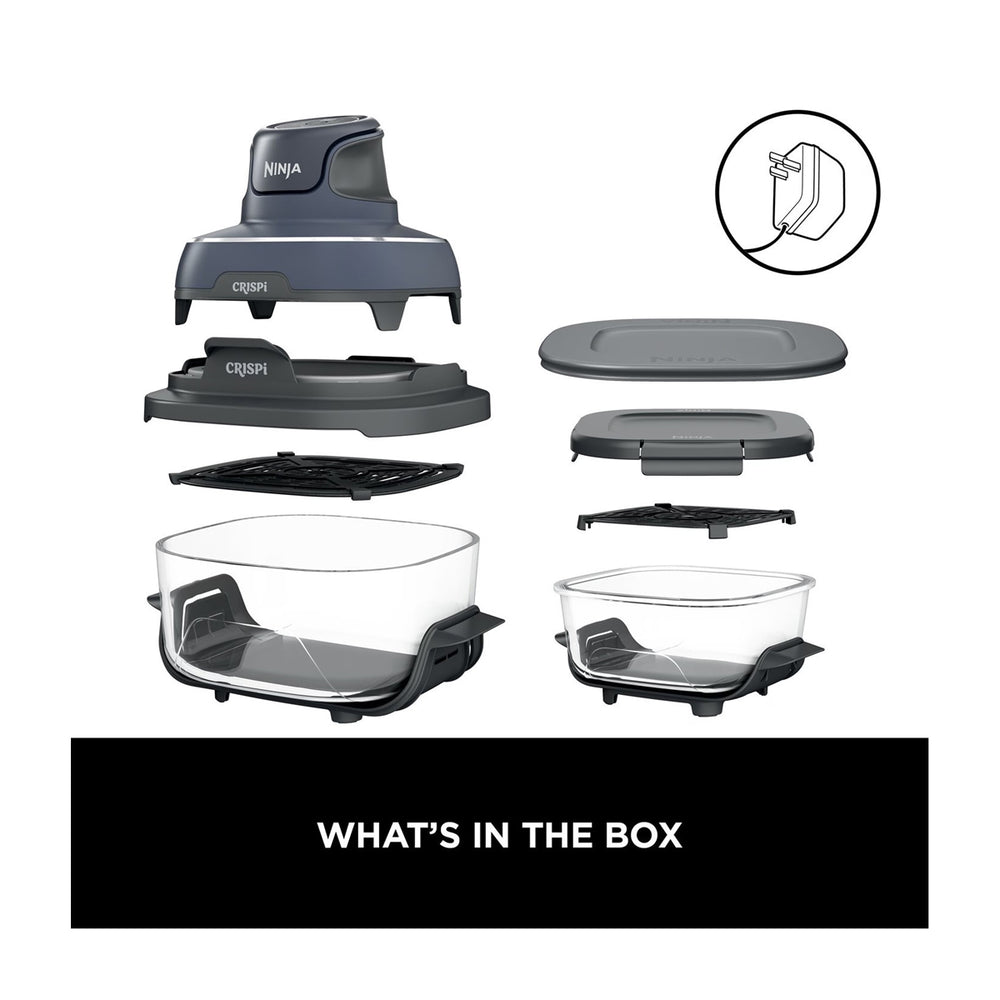 Incluye el Ninja Crispi PowerPod, recipientes de vidrio TempWare de 4 cuartos y 6 tazas, y 2 tapas de almacenamiento.