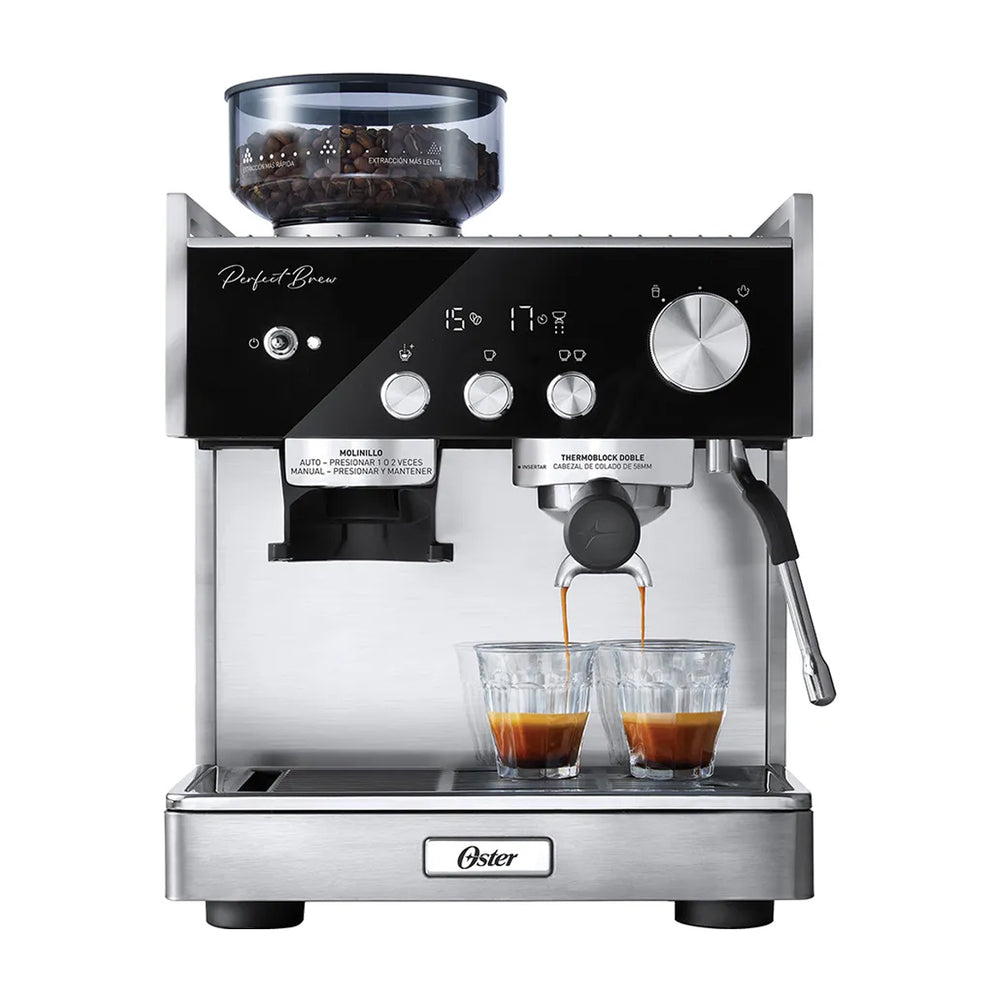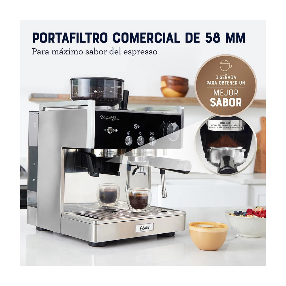 Oster BVSTEM7400 Cafetera Perfect Brew Máxima | Espresso y Latte | 15 Bares | Thermoblock Doble | Molino Inteligente | Acero Inoxidable