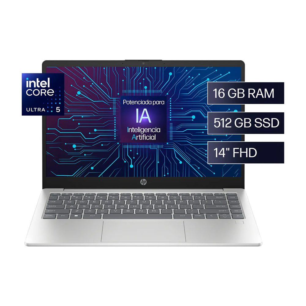 HP Laptop 14" FHD, Intel Core Ultra 5 125H, 16GB RAM, 512GB SSD, Lector de Huellas, Windows 11 Home | Plateado