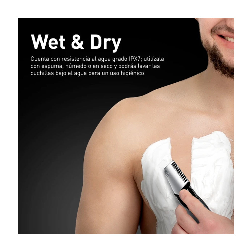 Su característica de resistencia al agua permite el afeitado durante la ducha.