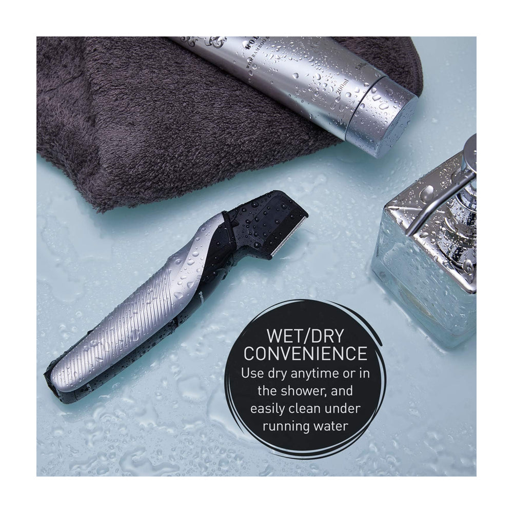 El cabezal tiene un sofisticado diseño en “V”, permitiendo llegar a zonas sensibles y de difícil acceso sin irritarlas. No quedan áreas sin rasurar, obtendrás una piel totalmente libre de vellos.
