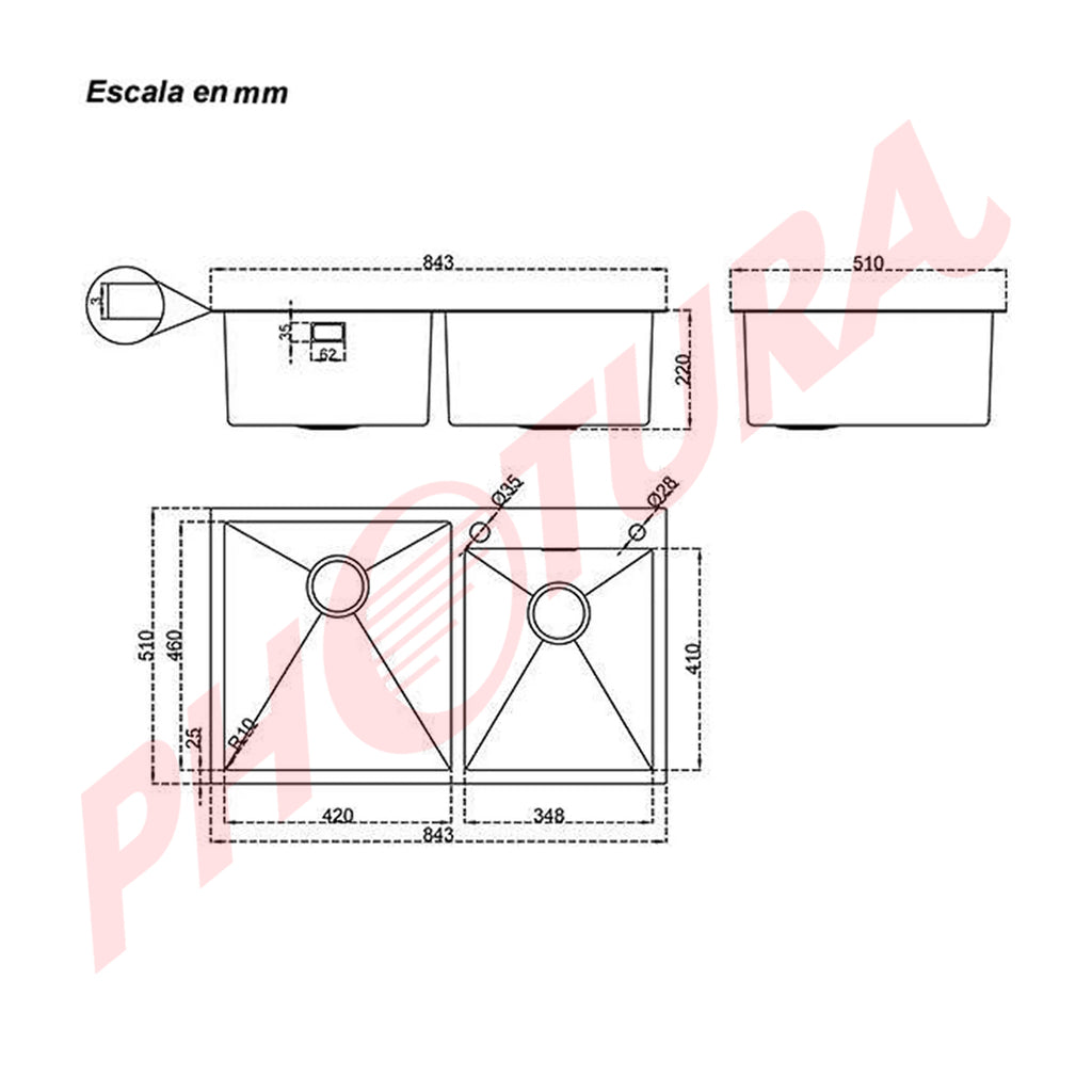 - Grosor del acero: 3 mm