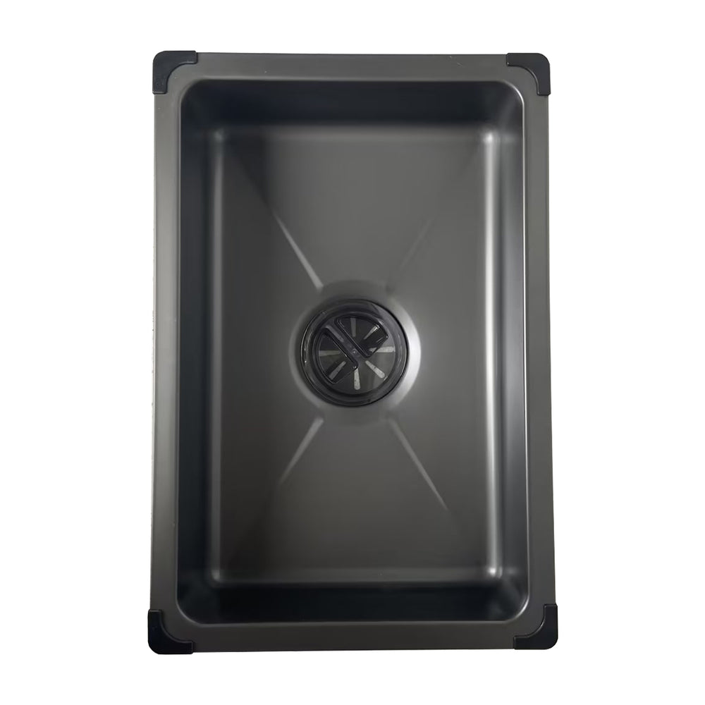 Nuestro fregadero de lujo redefine la elegancia en la cocina. Cuenta con una cesta extraíble, un versátil escurridor, tabla de madera para picar y grifo negro de doble función con opción de cascada y perilla de bronce. Además, incorpora un dispensador de jabón y un enjuagador de vasos para una comodidad inigualable.