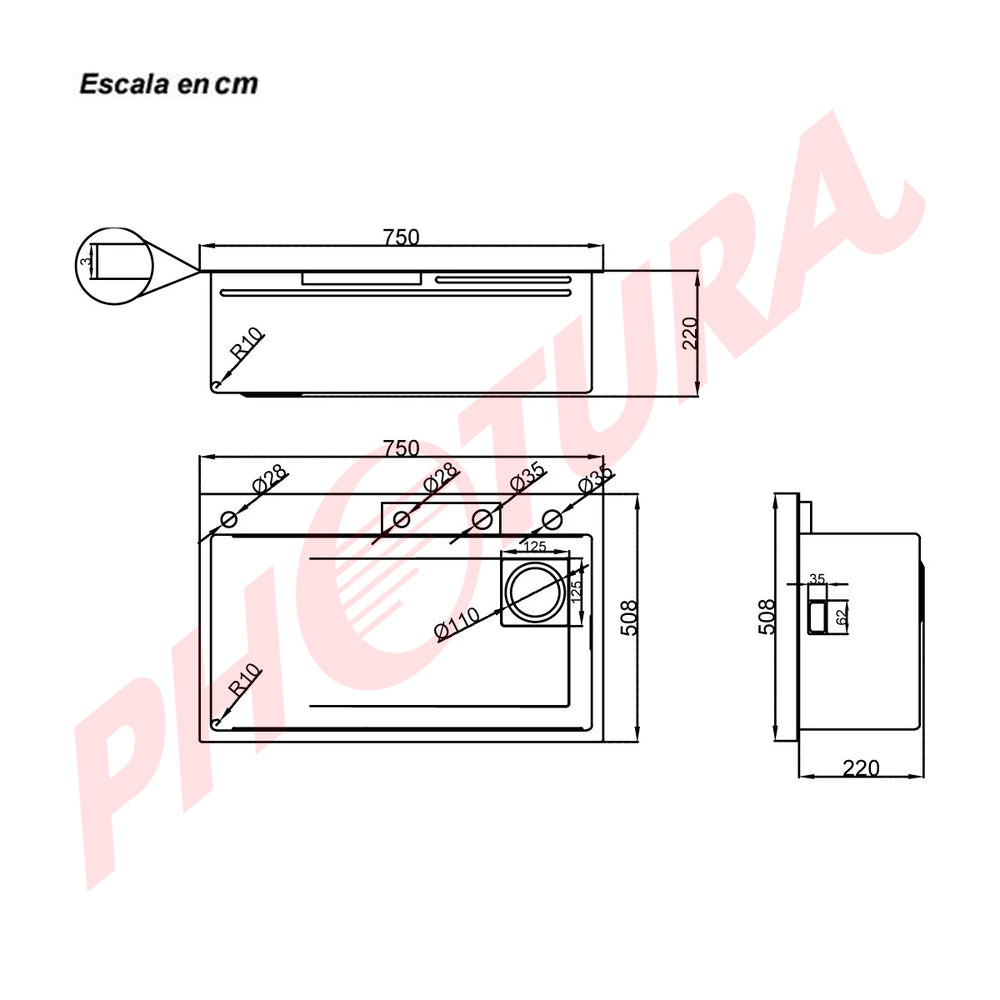 **Medidas Aproximadas (Ancho x Alto x Profundidad): 75cm x 22cm x 50.8cm**