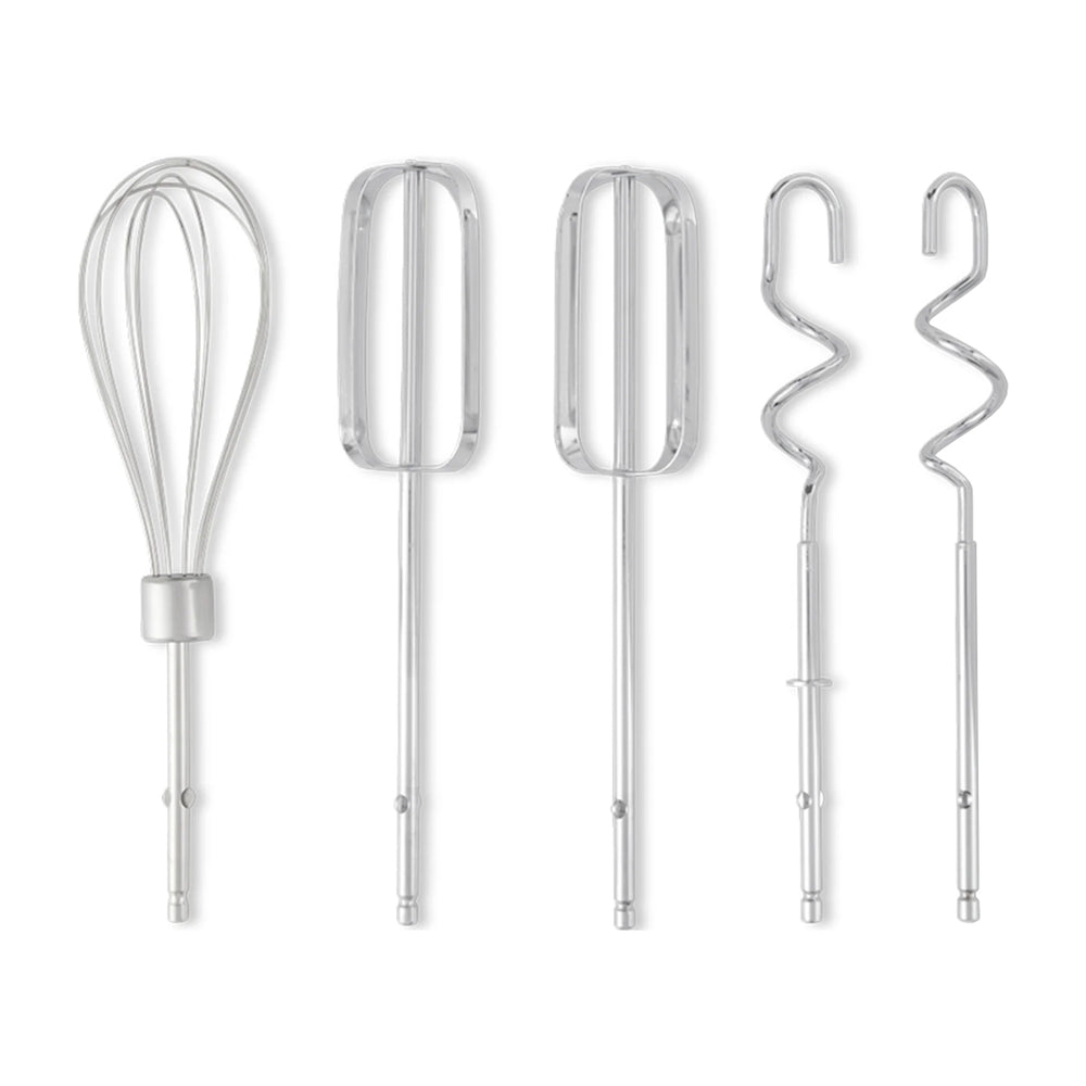 Incluye batidores traditionales, ganchos para masa y batidor de globo.