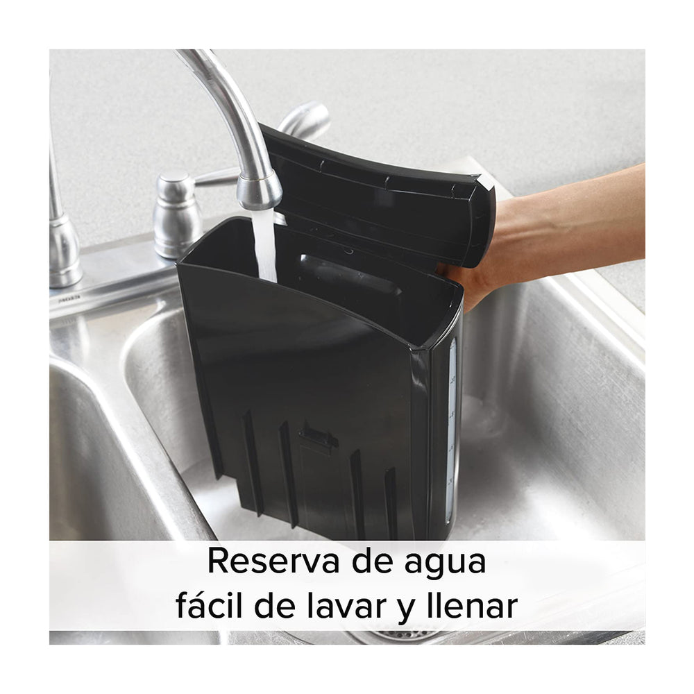 El depósito de agua se retira para facilitar el llenado y la limpieza.
