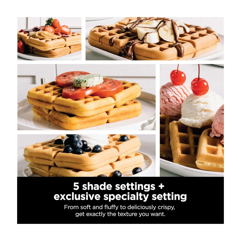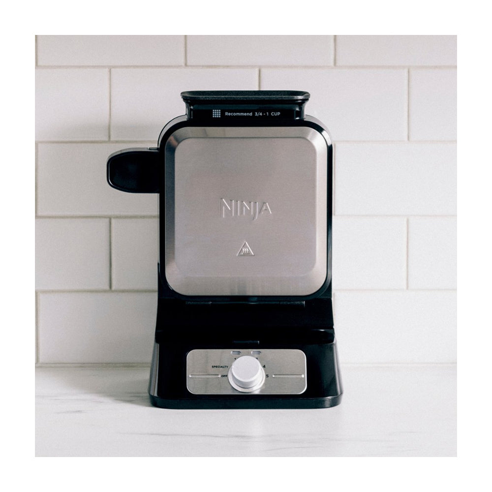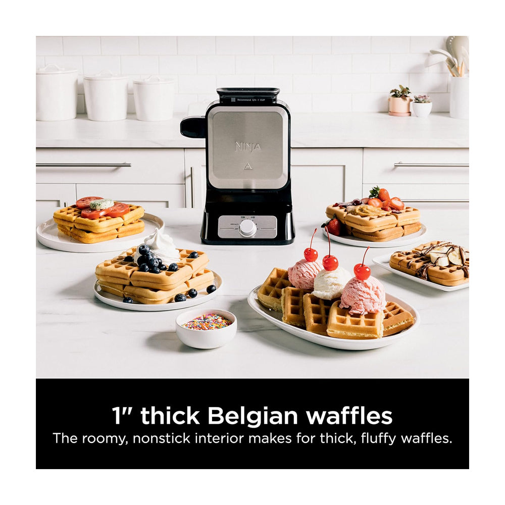 Ninja Waflera | Estilo Belga | Diseño vertical | Superficie Antiadherente | Plateado Negro