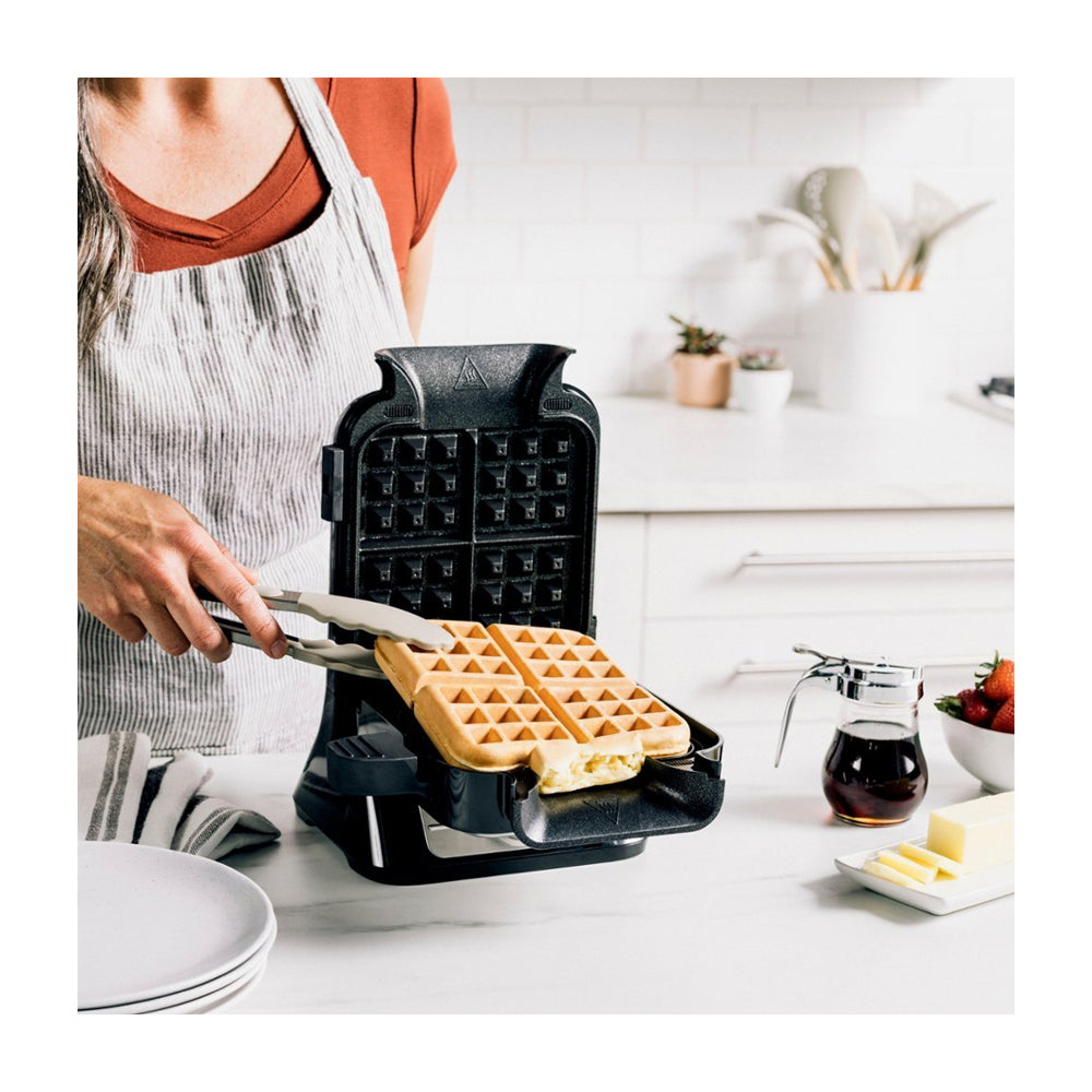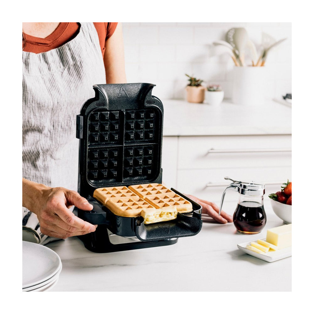 El interior espacioso y antiadherente permite preparar waffles gruesos y esponjosos.