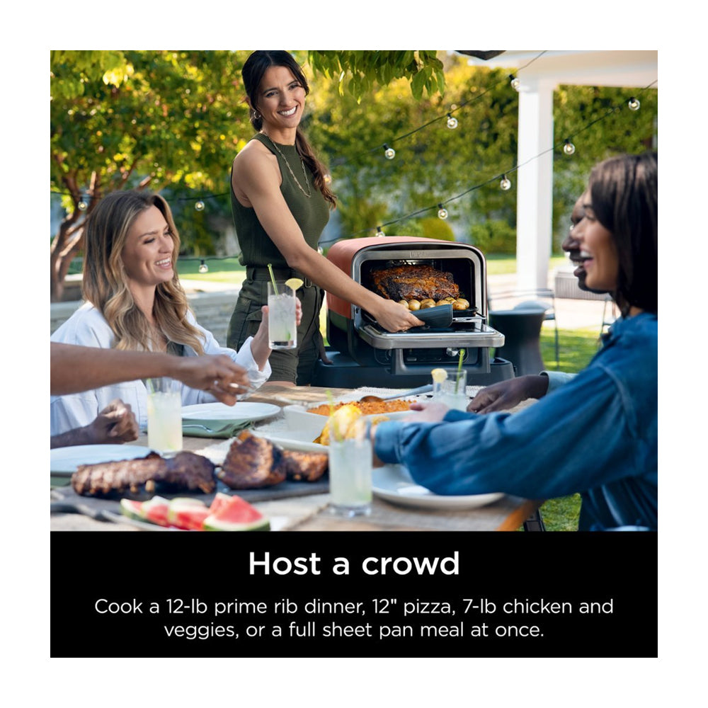 Ninja Woodfire Horno Eléctrico 8-en-1 para Exteriores | Woodfire Technology | Ahumador BBQ | Hornear y Asar | 1760W | Rojo