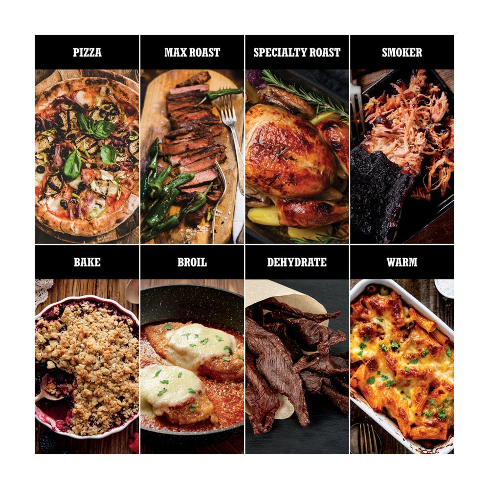 Haga más actividades al aire libre y convierta cualquier espacio en una cocina al aire libre; pizza, asado máximo, asado especial, asado, horneado, ahumador, deshidratado y mantenimiento del calor.