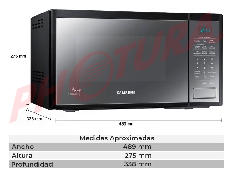 Samsung Microondas de 750W | Interior de Cerámica Esmaltada | Modo Eco | 0.8p3 | Negro