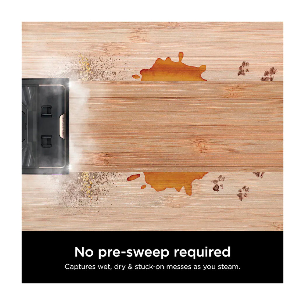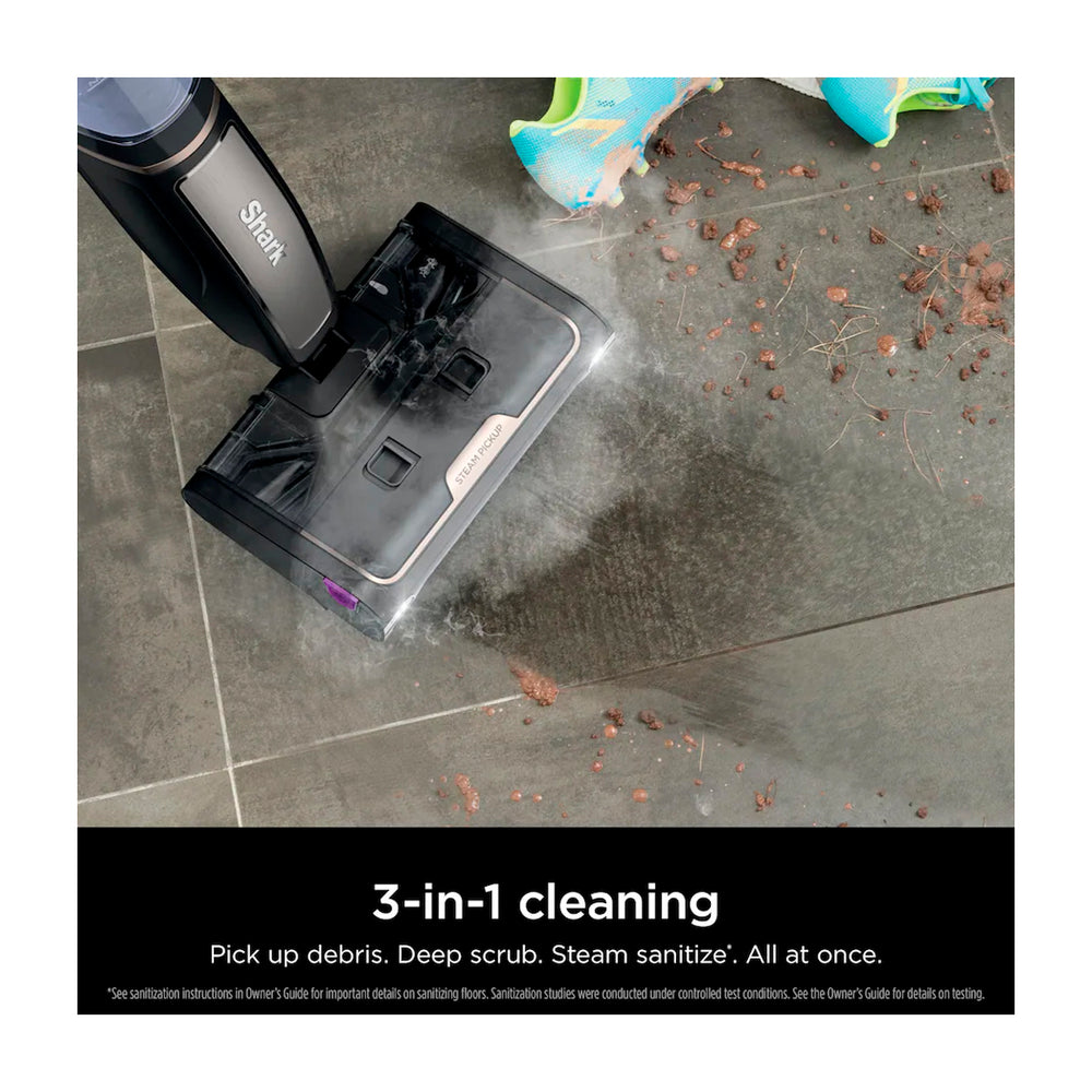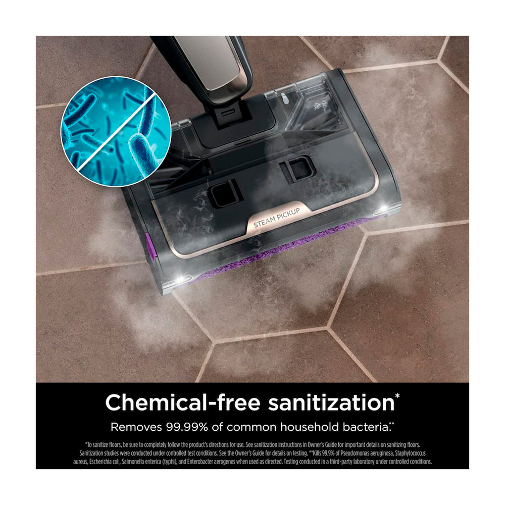 El Shark Steam Pickup 3-en-1 Steam Mop aspira residuos, limpia en profundidad y desinfecta con vapor, todo al mismo tiempo. Captura y separa los residuos húmedos y secos dentro de la boquilla, sin necesidad de barrer previamente. Ofrece una limpieza de manchas 2 veces más eficaz que las mopas de vapor tradicionales. Elimina hasta el 99,9 % de las bacterias domésticas más comunes mediante desinfección sin productos químicos.