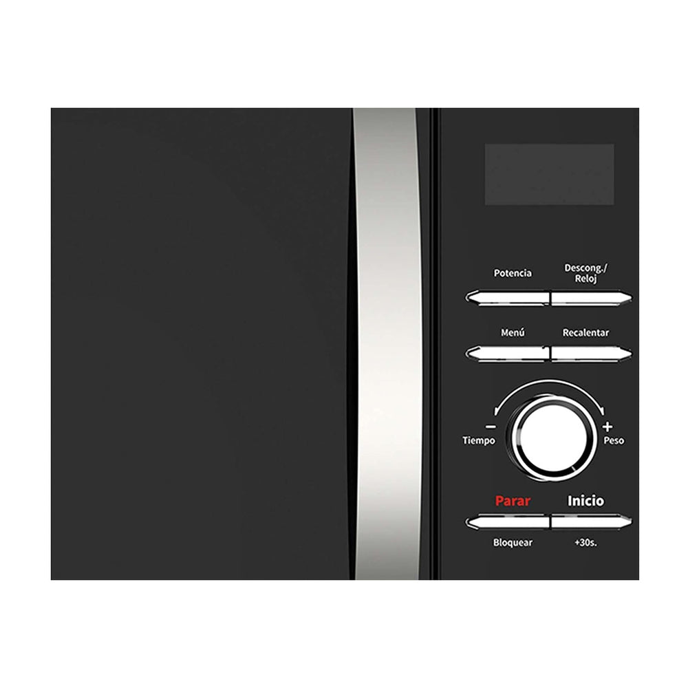 Horno de microondas color negro con acabado espejo.