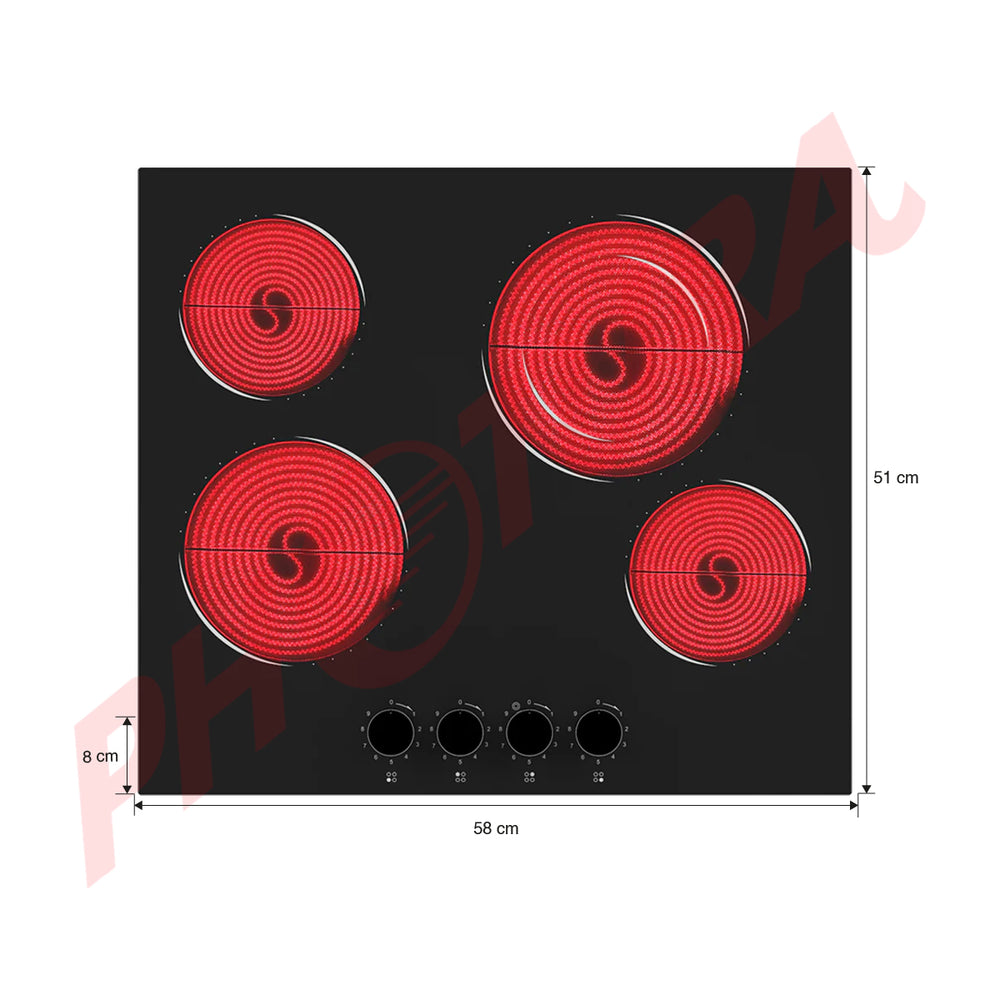 RCA Estufa Empotrable Eléctrica de Vitrocerámica | 24" | 4 Quemadores | 9 Niveles de Potencia