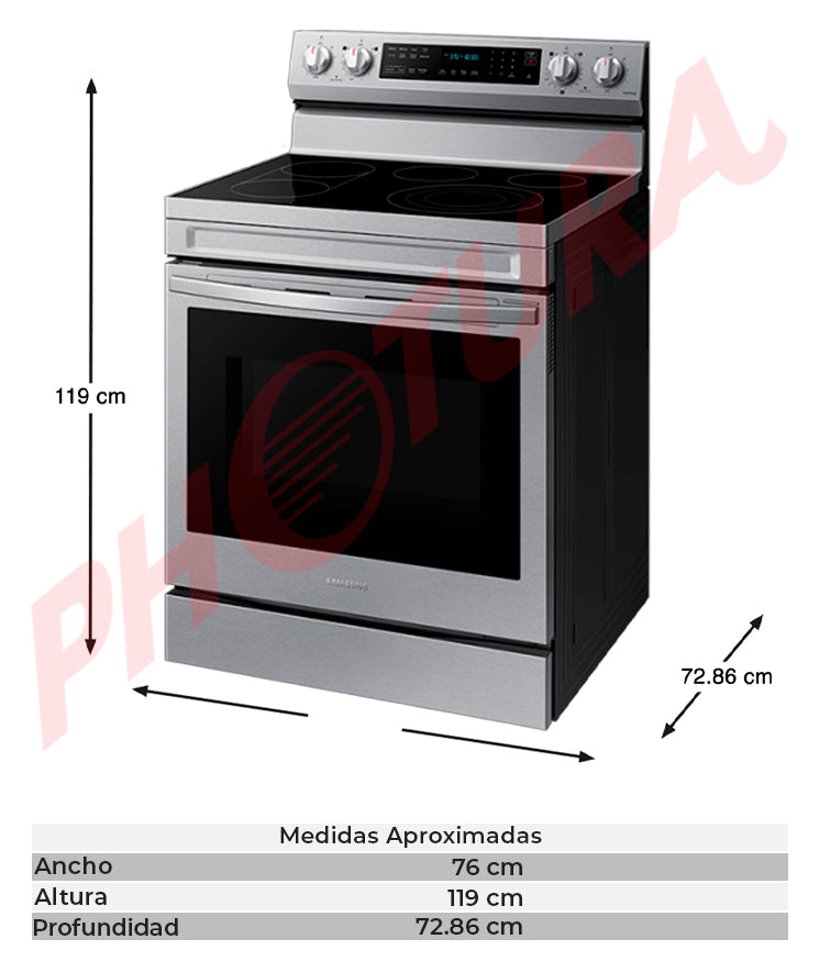Samsung Estufa Eléctrica de Acero Inoxidable | 3-en-1 | WiFi Smart | 6.3p3 | Air Fryer | True Convection | Control de Voz (Alexa y Google) | Panel Digital | Plancha | 30" | 5 Quemadores