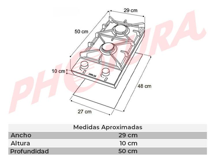 Drija Milan 30 Estufa Empotrable a Gas de Acero Inoxidable | 2 Quemadores | 2 Válvulas de Seguridad