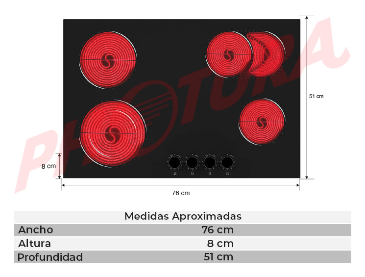 RCA Estufa Empotrable Eléctrica de Vitrocerámica | 30" | 4 Quemadores | 9 Niveles de Potencia