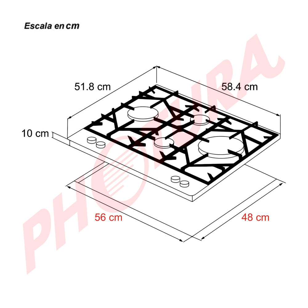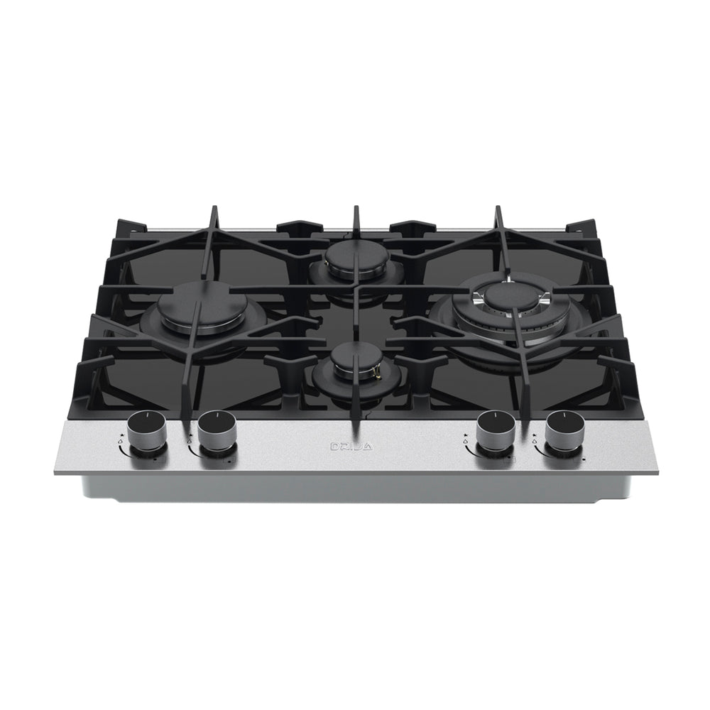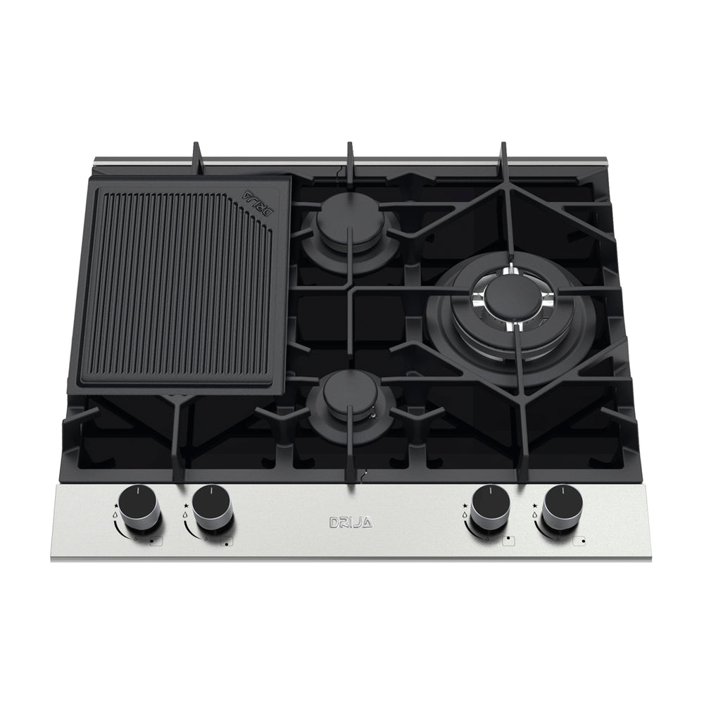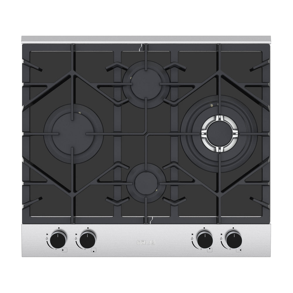 Drija Ferrara 60 Pro Estufa Empotrable a Gas de Vidrio Templado / Acero Inoxidable | 4 Quemadores | 4 Válvulas de Seguridad