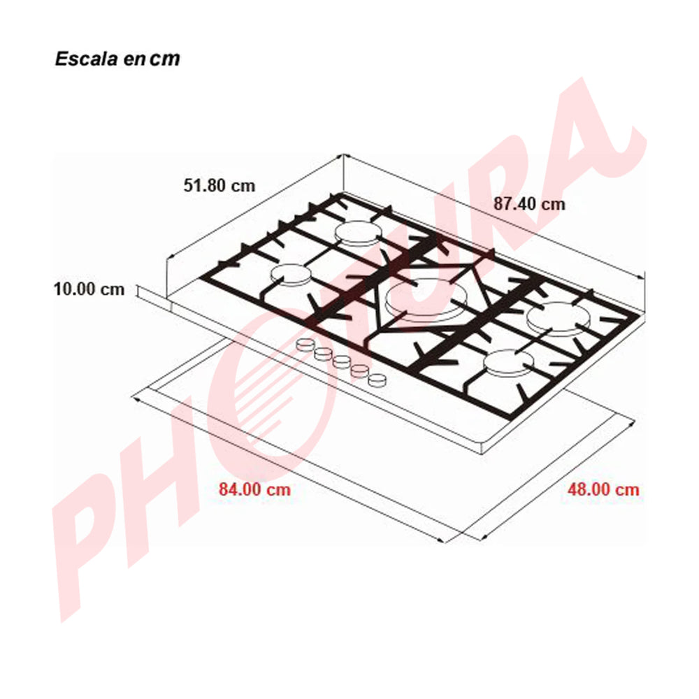 Drija Ferrara 90 Pro Estufa Empotrable a Gas de Vidrio Templado / Acero Inoxidable | 5 Quemadores | 5 Válvulas de Seguridad