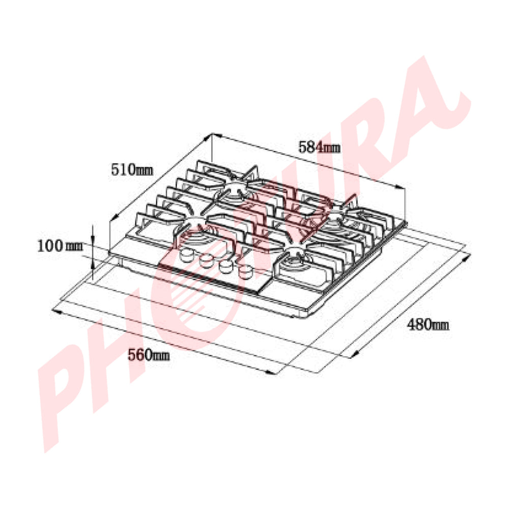 Drija Italia 60 Estufa Empotrable a Gas de Vidrio Templado | 4 Quemadores | 4 Válvulas de Seguridad