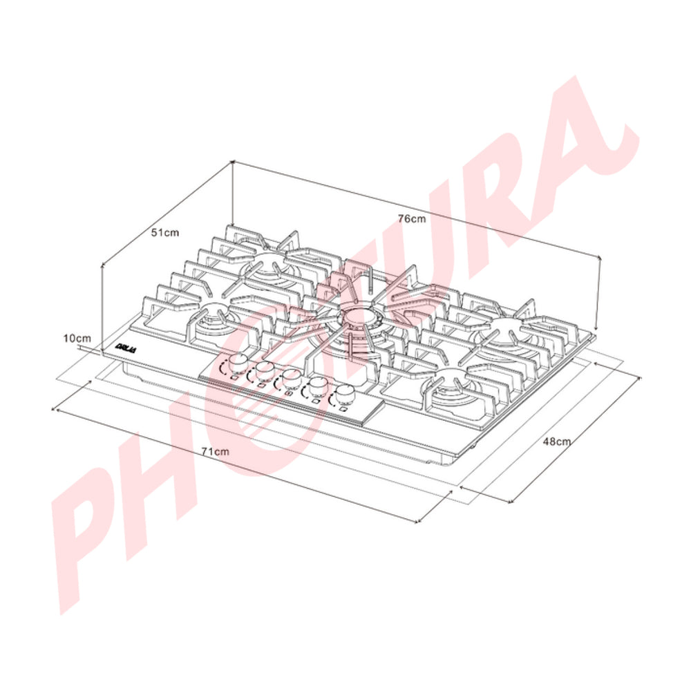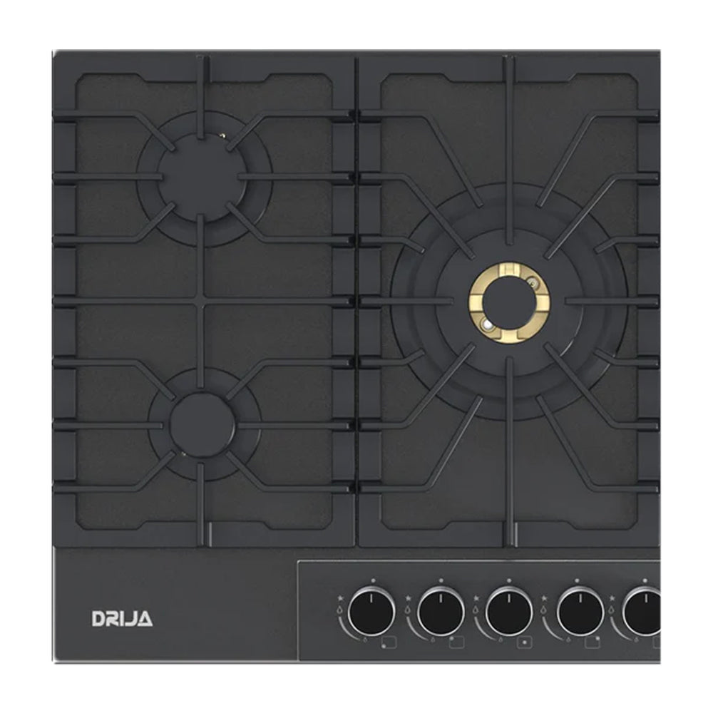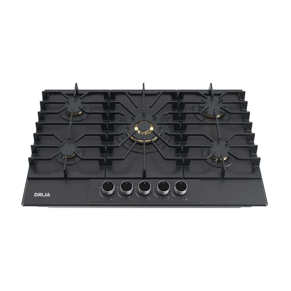 Drija Italia 76 Estufa Empotrable a Gas de Vidrio Templado | 5 Quemadores | 5 Válvulas de Seguridad