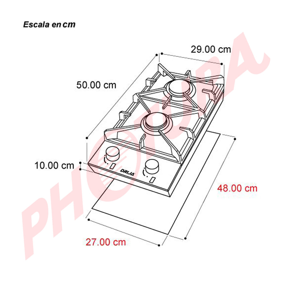 Drija Milan 30 Estufa Empotrable a Gas de Acero Inoxidable | 2 Quemadores | 2 Válvulas de Seguridad
