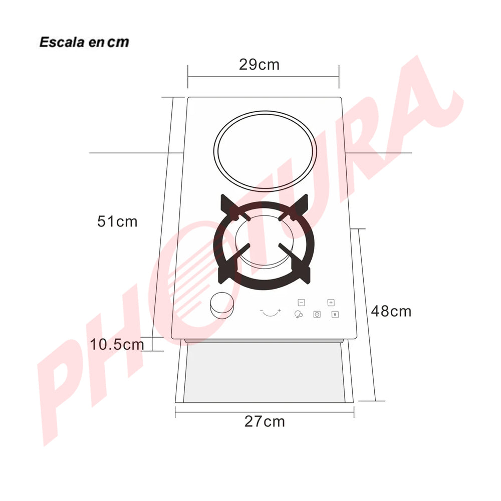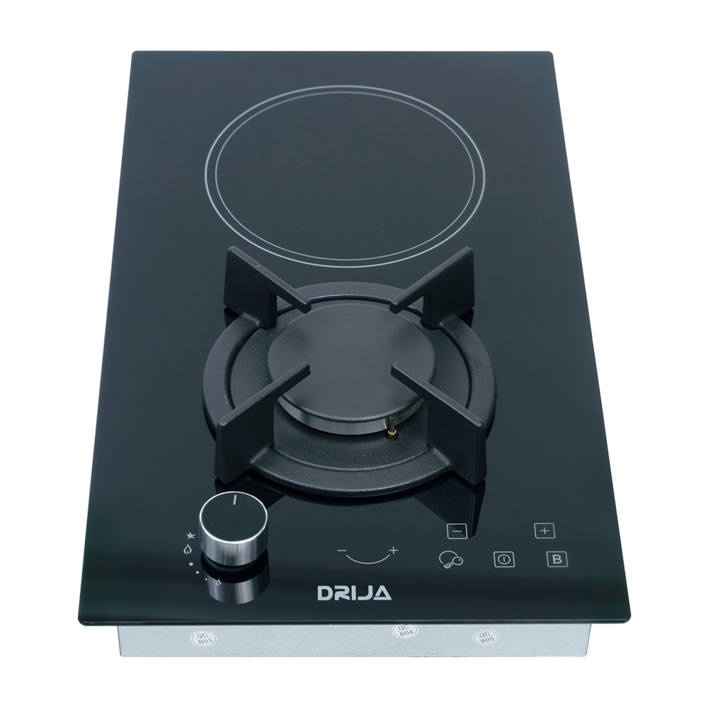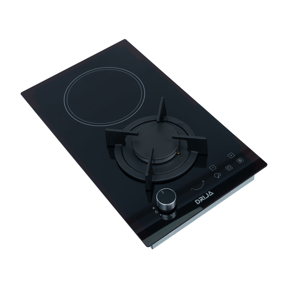 Drija Sicilia 30 Estufa Empotrable Dual (a Gas y Eléctrica) de Vitrocerámica | 2 Quemadores | Bloqueo de Seguridad