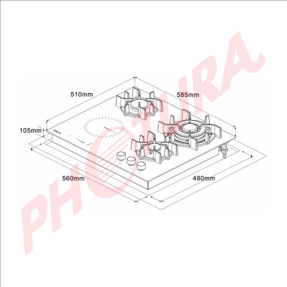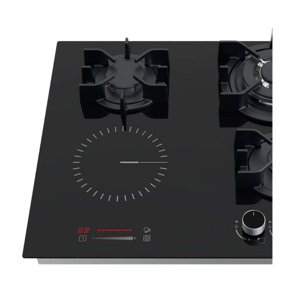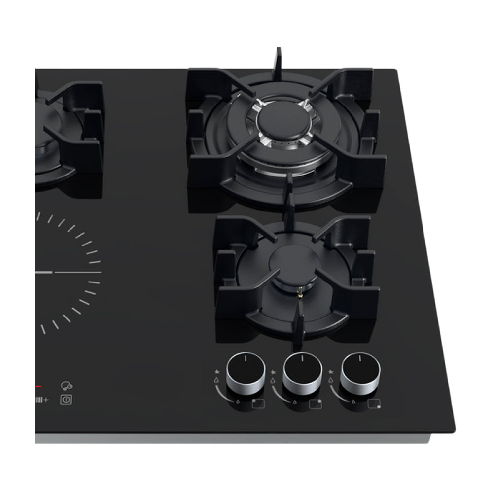 Drija Sicilia Touch 60 Estufa Empotrable Dual (a Gas y Eléctrica) de Vidrio Templado | 4 Quemadores | Bloqueo de Seguridad