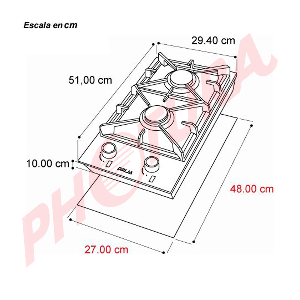 Drija Toscana 30 Estufa Empotrable a Gas de Vidrio Templado | 2 Quemadores | 2 Válvulas de Seguridad