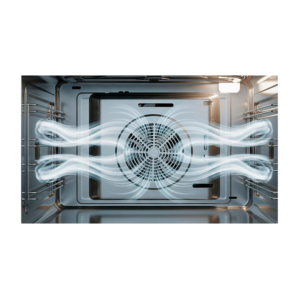 Cocina tus recetas de forma pareja gracias al ventilador interno que distribuye el calor, obteniendo resultados uniformes sin tener que rotar las bandejas.