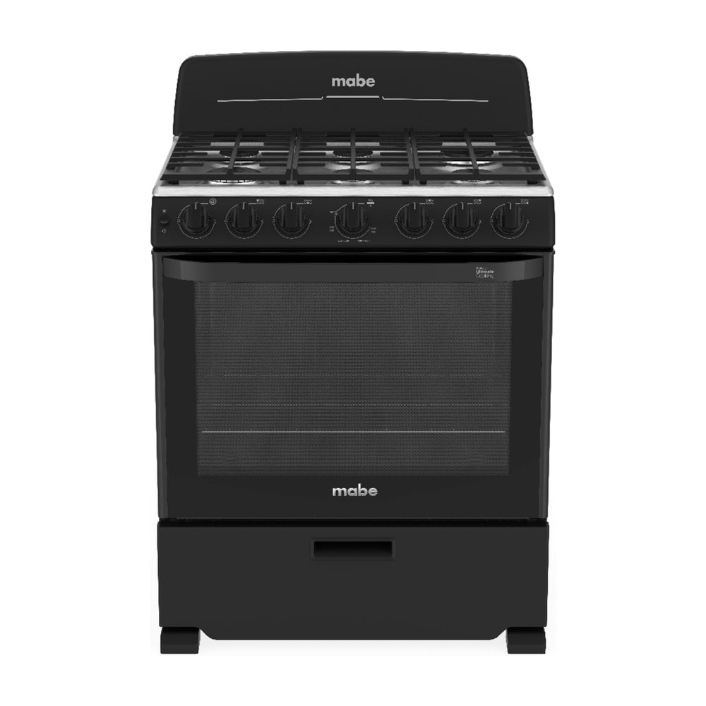 Mabe Estufa a Gas de Acero Inoxidable | Tecnología Ultimate | Perfect Cook | Easy Clean Pro | 30" | 6 Quemadores | Negro