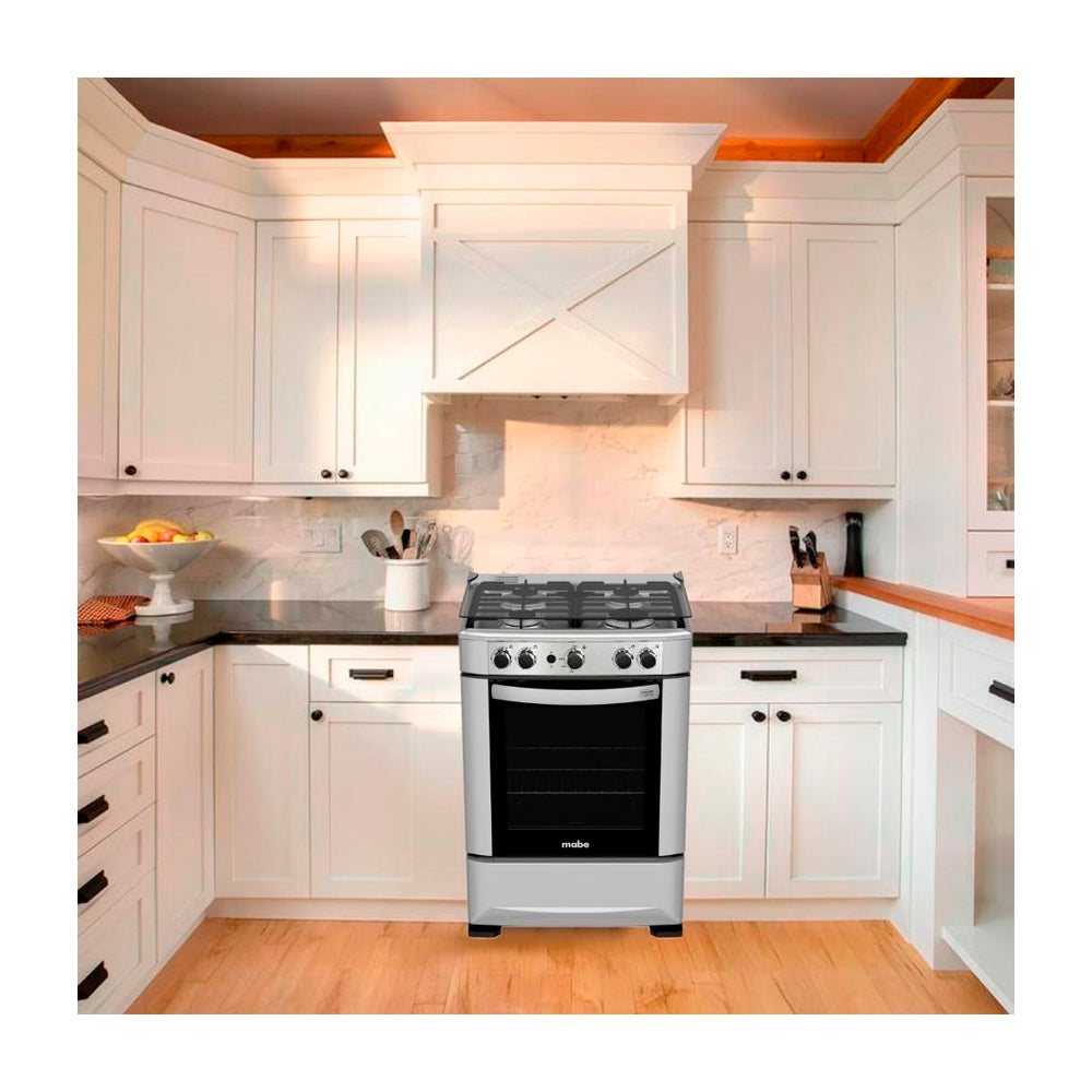 Mabe Estufa a Gas de Acero Inoxidable | Easy Clean Pro | Enc. Eléctrico | Tapa | 24" | 4 Quemadores | Plateado