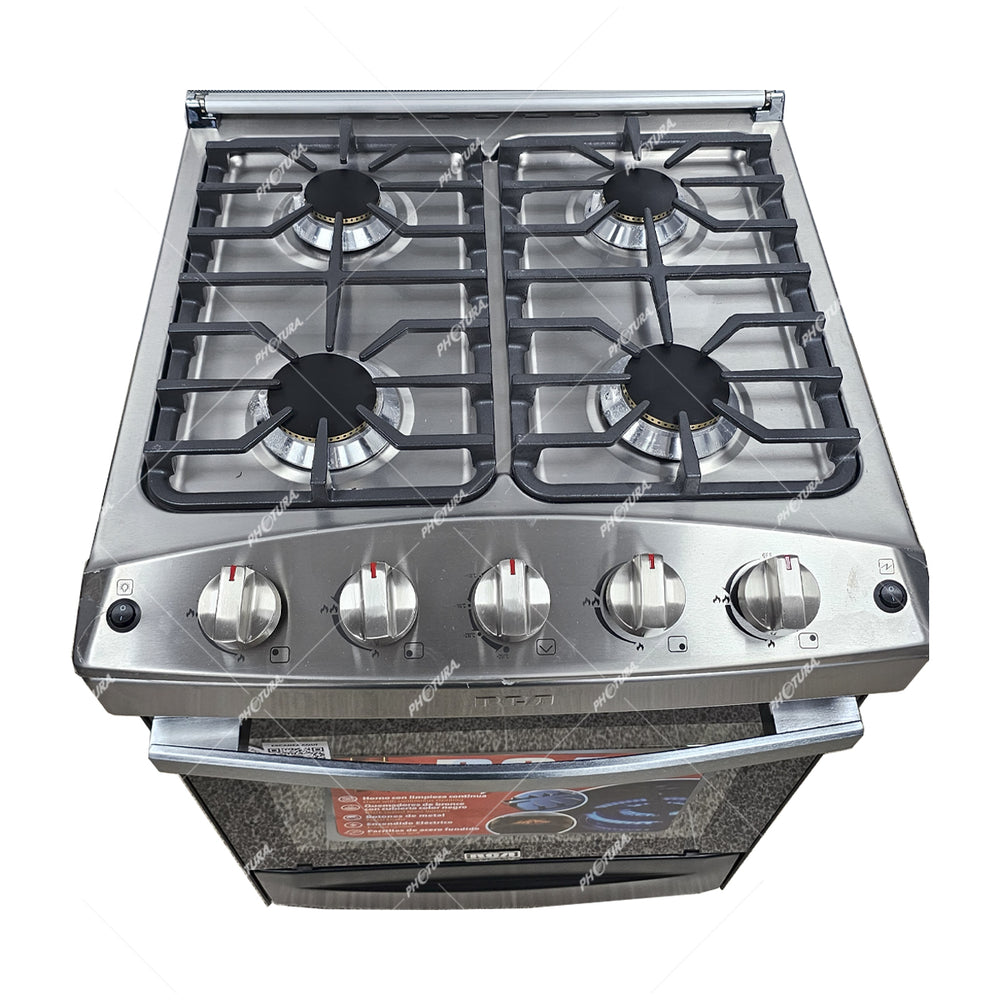 RCA Estufa a Gas de Acero Inoxidable | Enc. Eléctrico | Tapa | 24" | 4 Quemadores | Negro