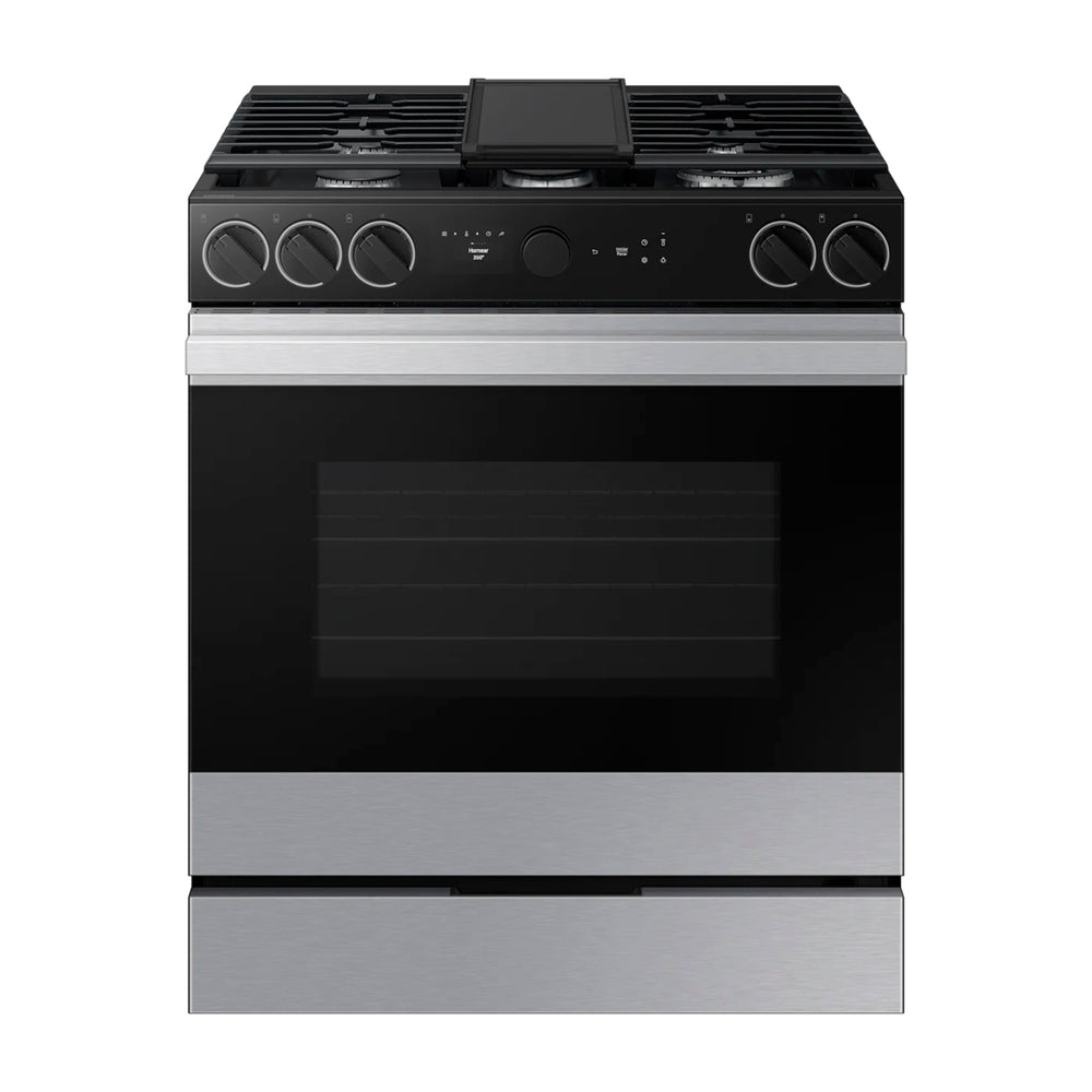 Samsung BESPOKE Estufa a Gas de Acero Inoxidable | WiFi Smart | 6p3 | Air Sous Vide | True Convection | Panel Digital | Plancha | 30" | 5 Quemadores