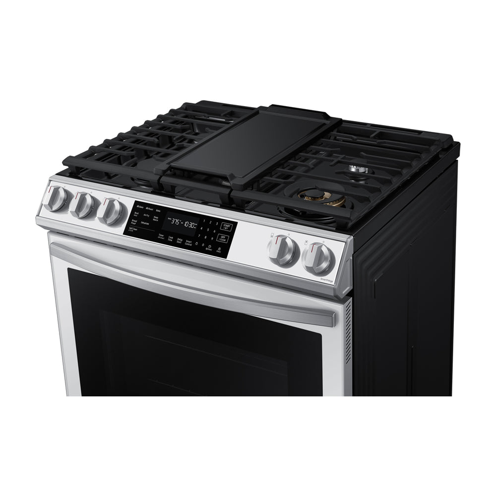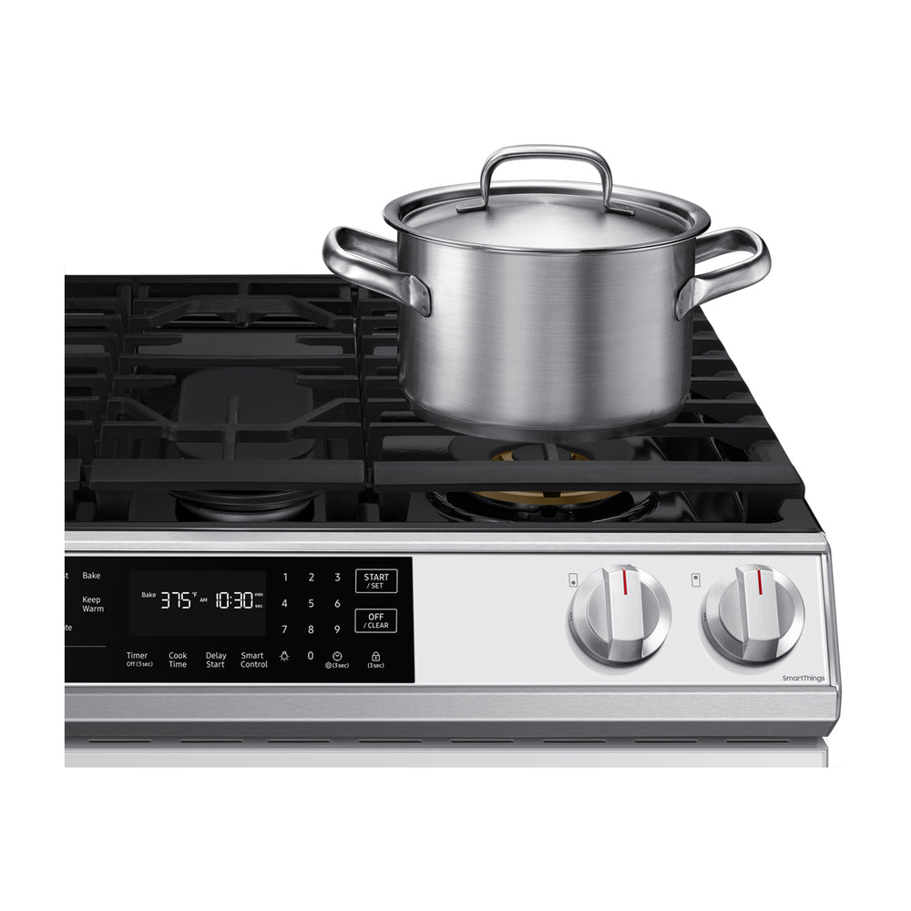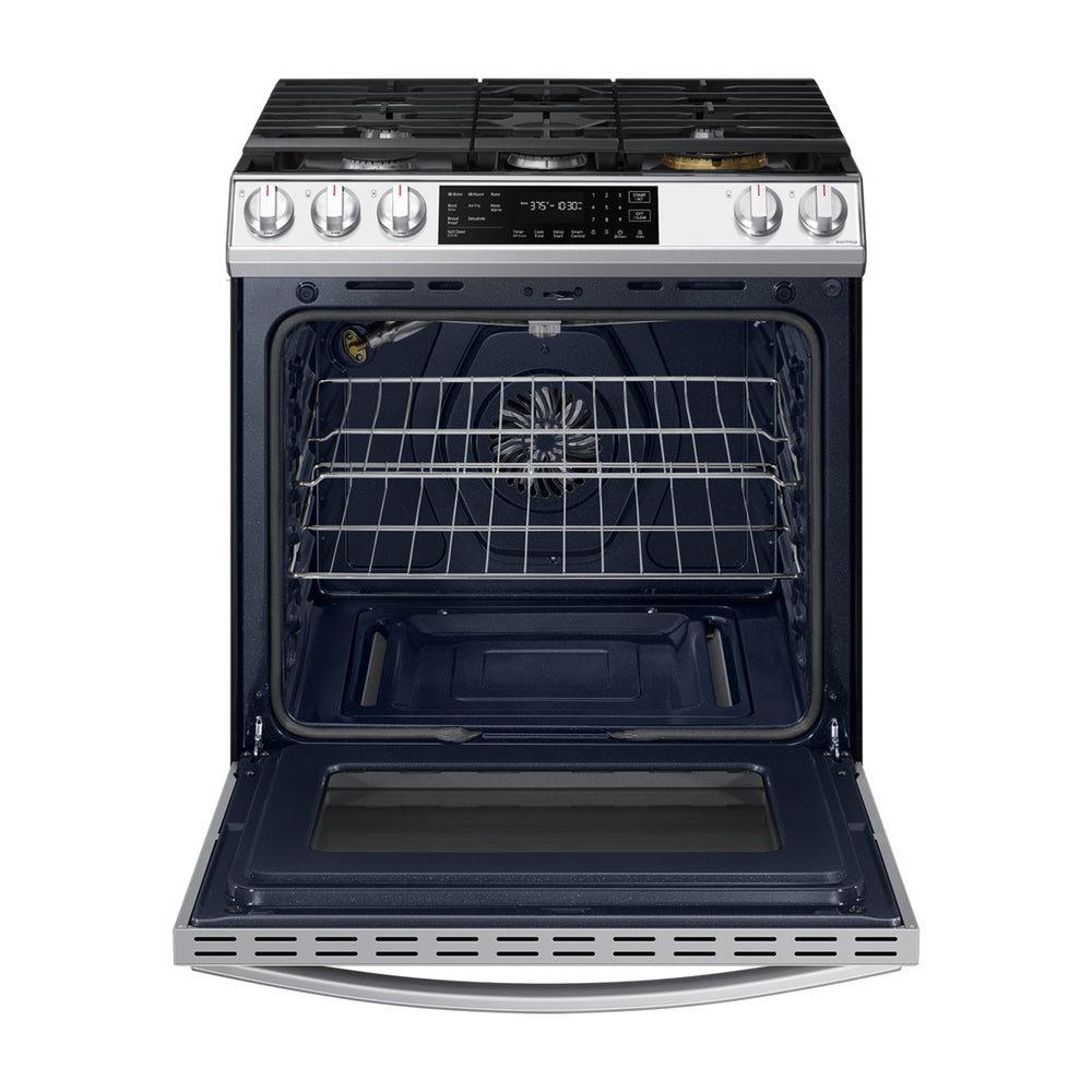 Samsung Estufa a Gas de Acero Inoxidable | WiFi Smart | 6p3 | Air Fryer | True Convection | Control de Voz (Alexa y Google) | Panel Digital | 30" | 5 Quemadores