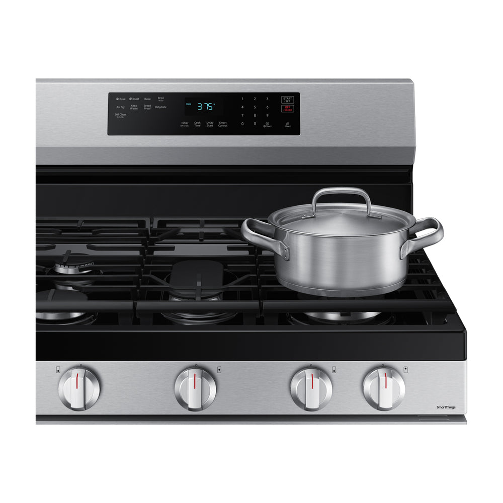 Samsung Estufa a Gas de Acero Inoxidable | WiFi Smart | 6p3 | Air Fryer | Convección | Control de Voz (Alexa y Google) | Panel Digital | Plancha | 30" | 5 Quemadores