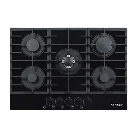 Sankey Estufa Empotrable a Gas de Vidrio Templado | 75cm | 5 Quemadores | Encendido por Pulso